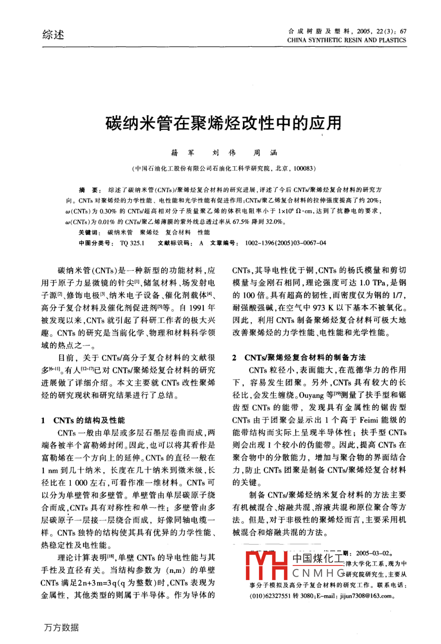 碳纳米管在聚烯烃改性中的应用