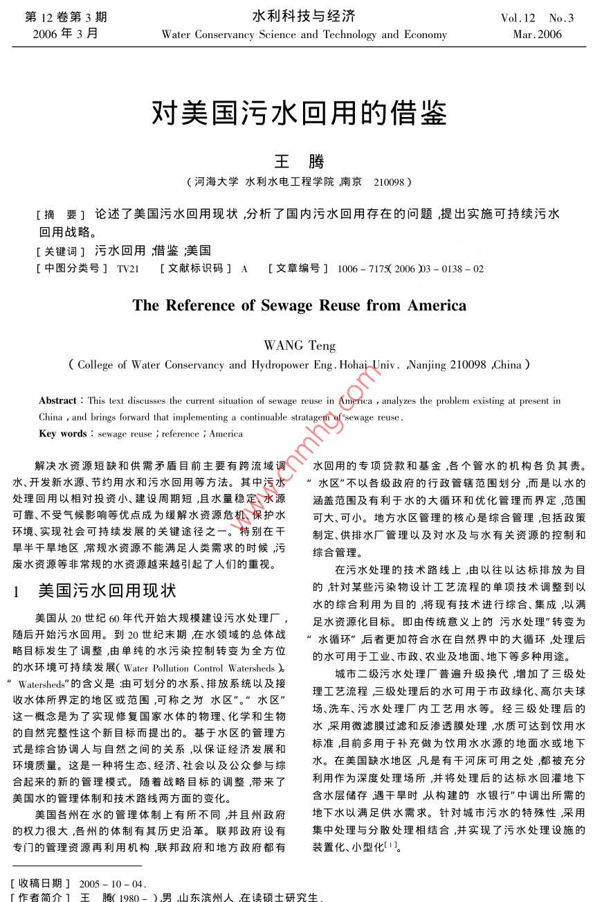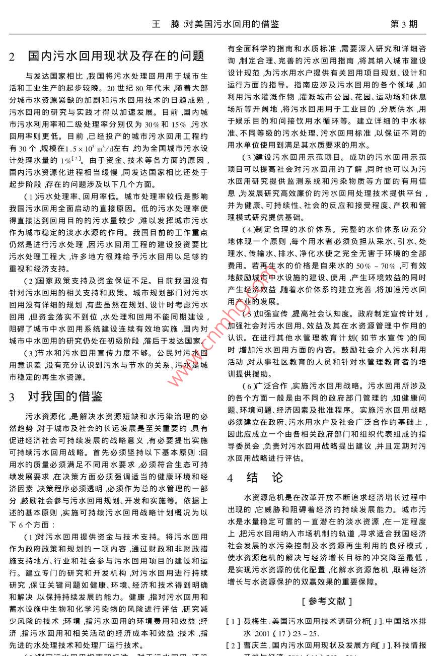 对美国污水回用的借鉴