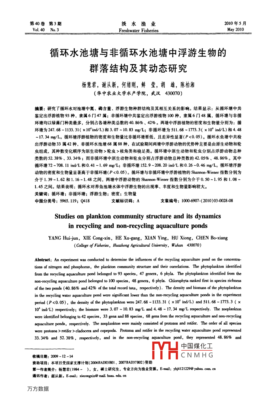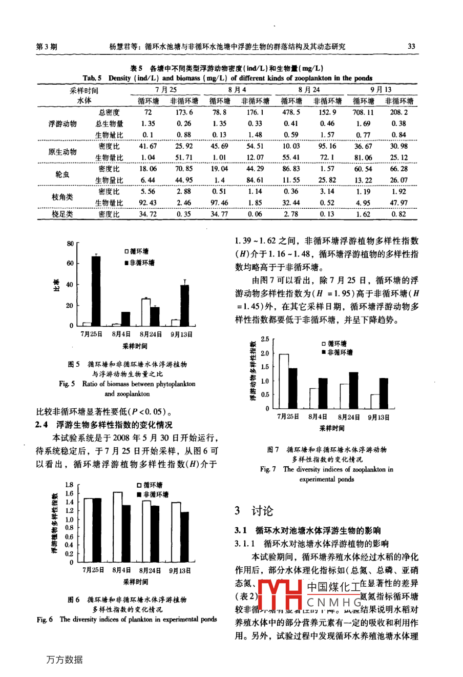 循环水池塘与非循环水池塘中浮游生物的群落结构及其动态研究
