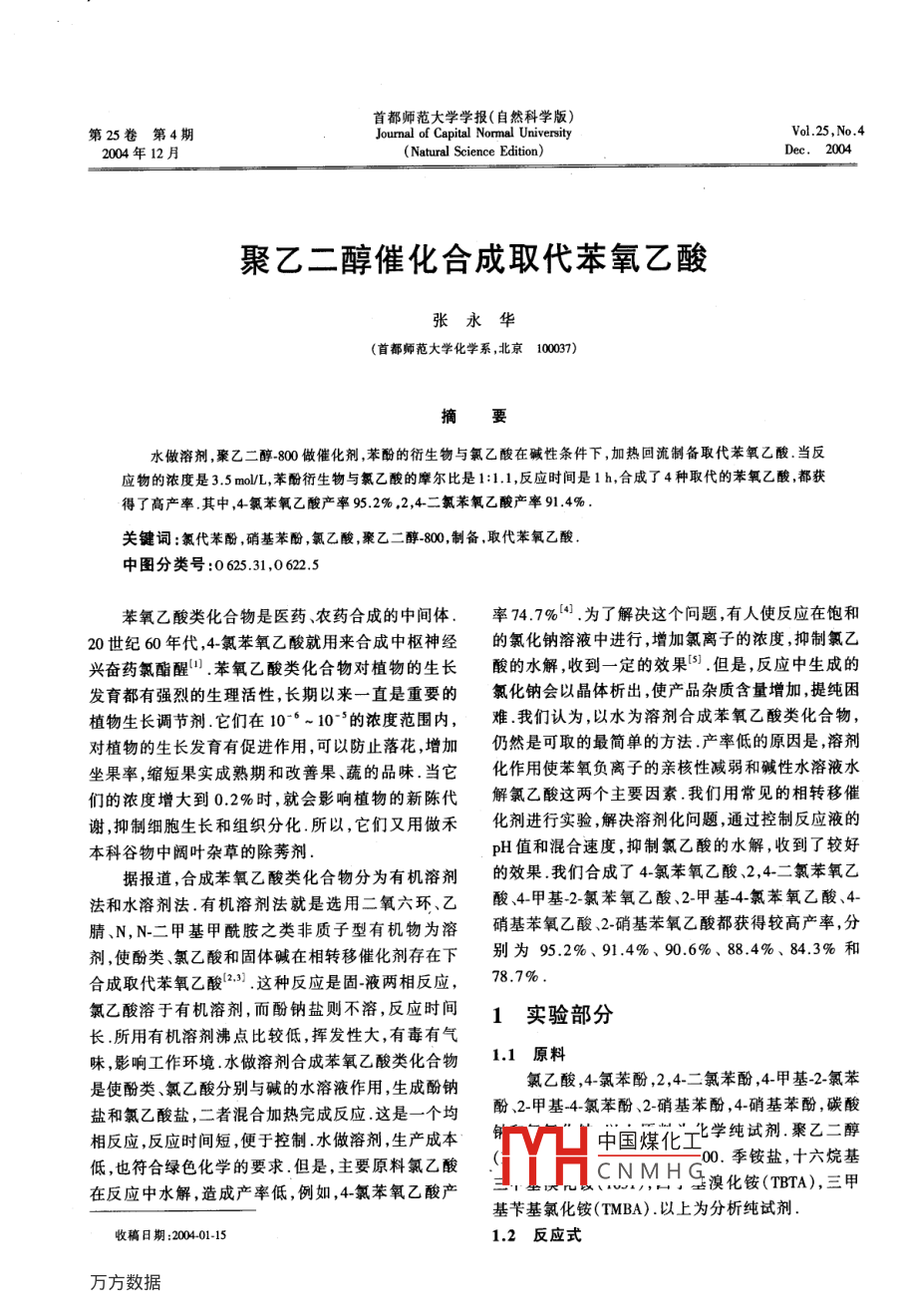 上一条:聚乙二醇催化合成取代苯氧乙酸