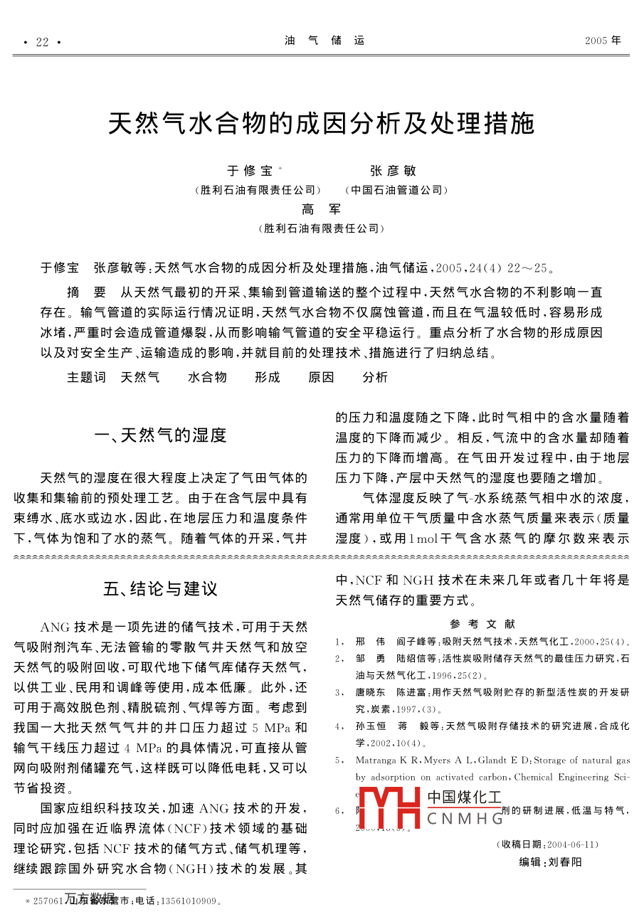 - 期刊名字:油气储运