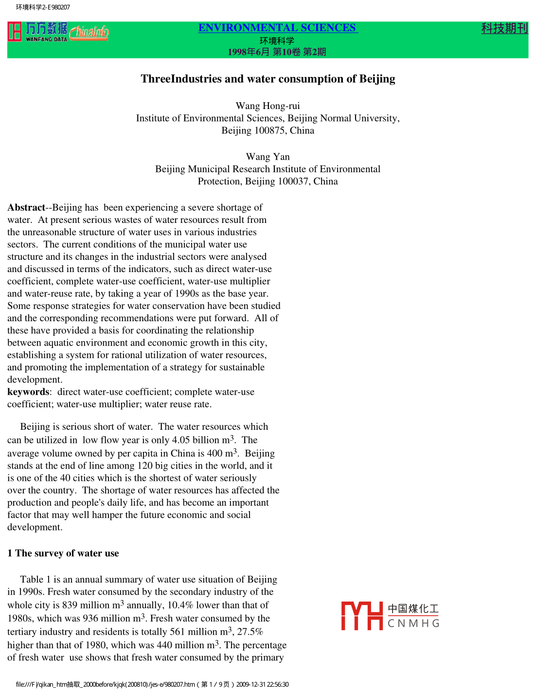 - 作者单位:Institute of Environmental Sciences,Beijing Municipal Research Institute of Environmental Protection