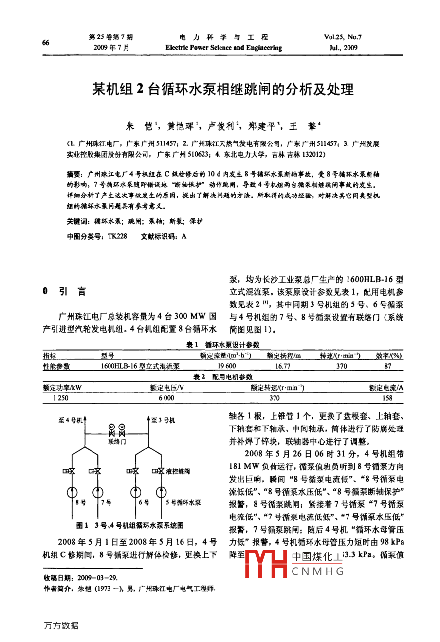 某机组2台循环水泵相继跳闸的分析及处理