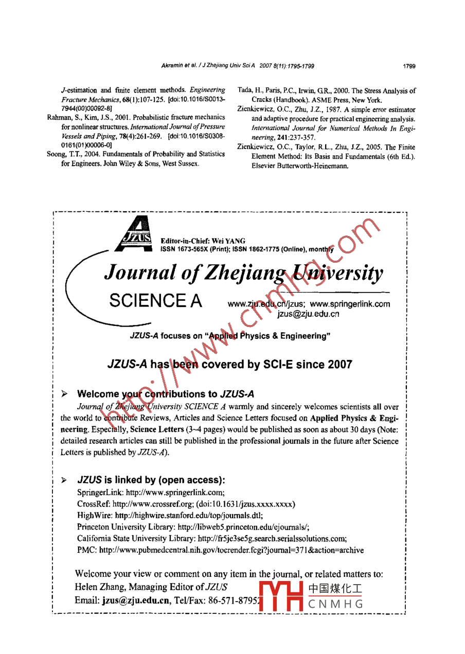 - 期刊名字:浙江大学学报A(英文版)