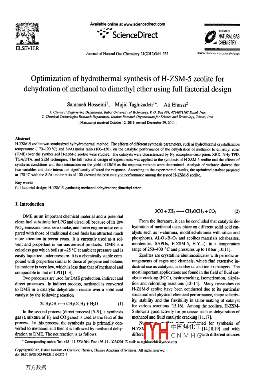 下一条:Preparation of nanocrystalline γ-Al2O3 catalyst using different procedures for methanol dehydration
