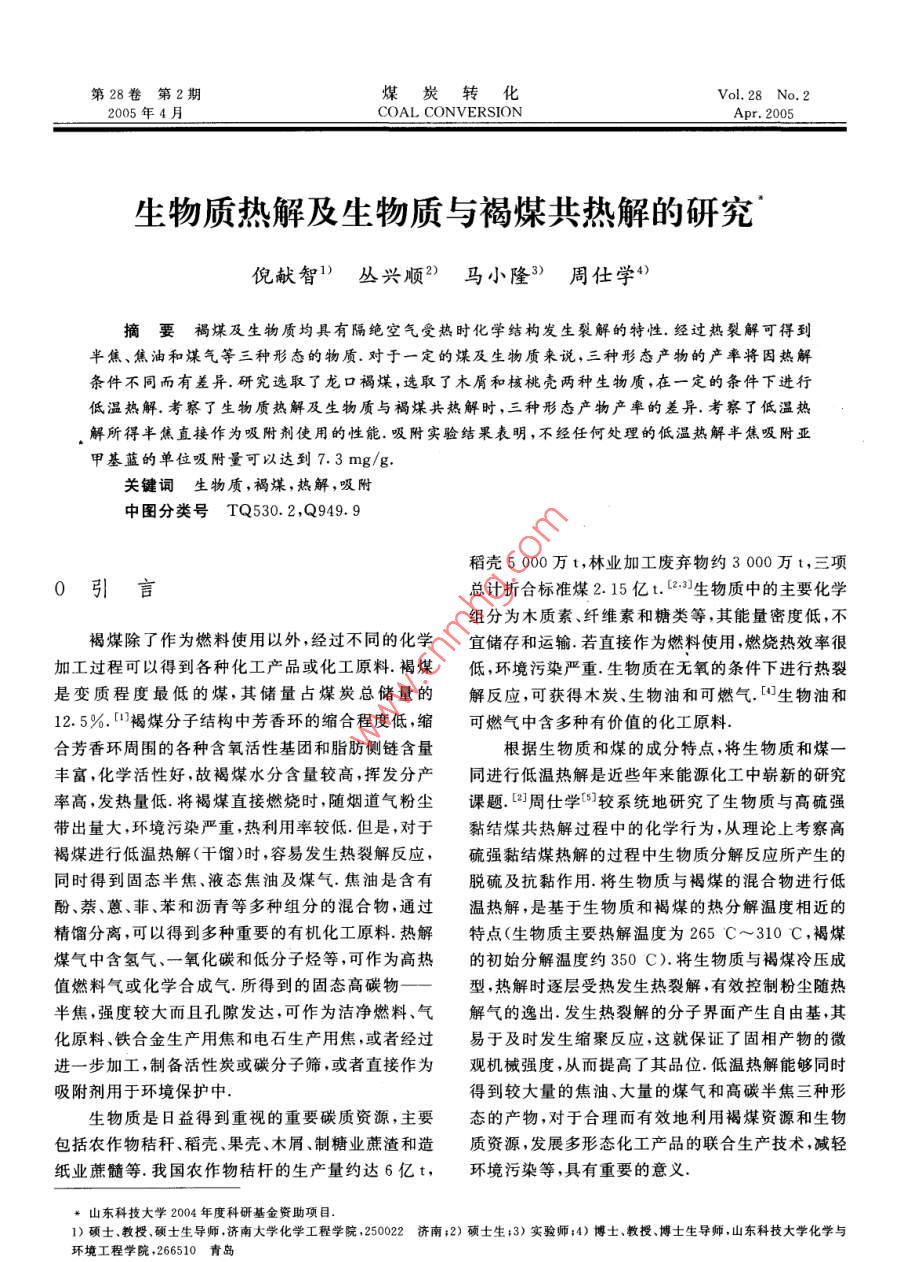 生物质热解及生物质与褐煤共热解的研究