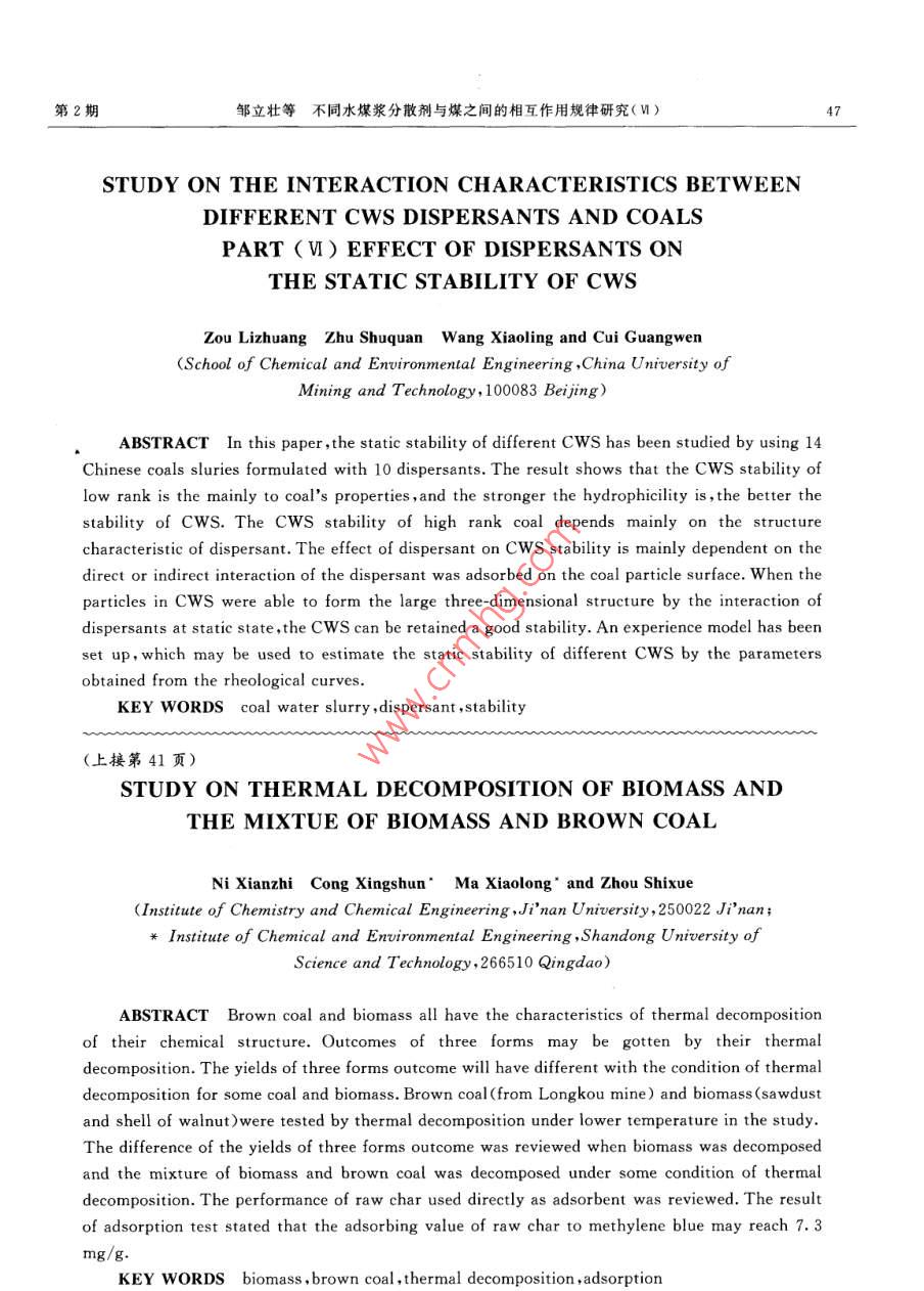 - 期刊名字:煤炭转化