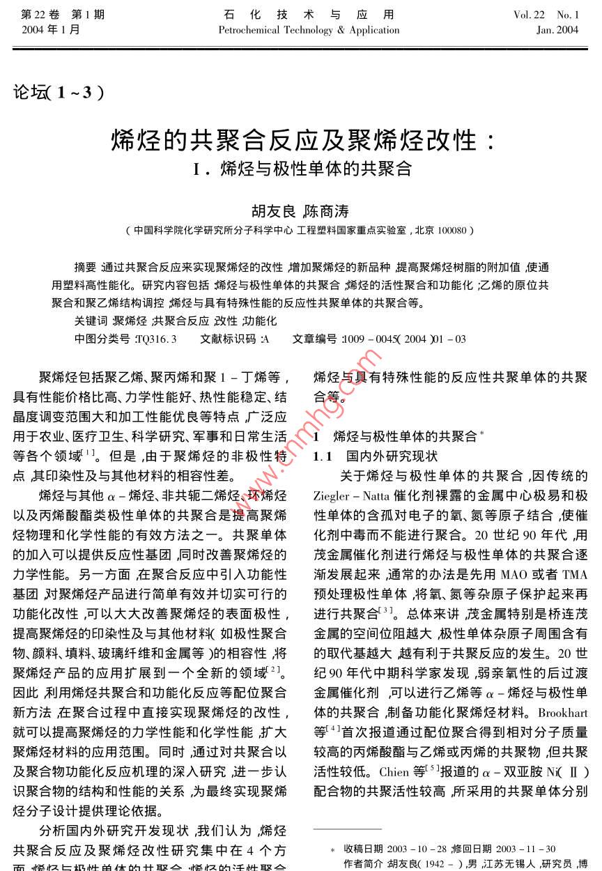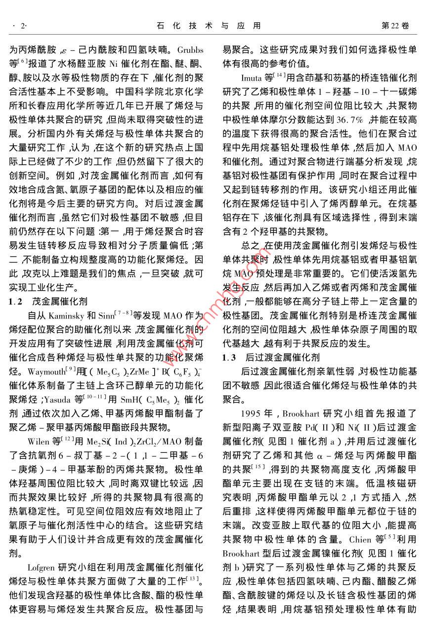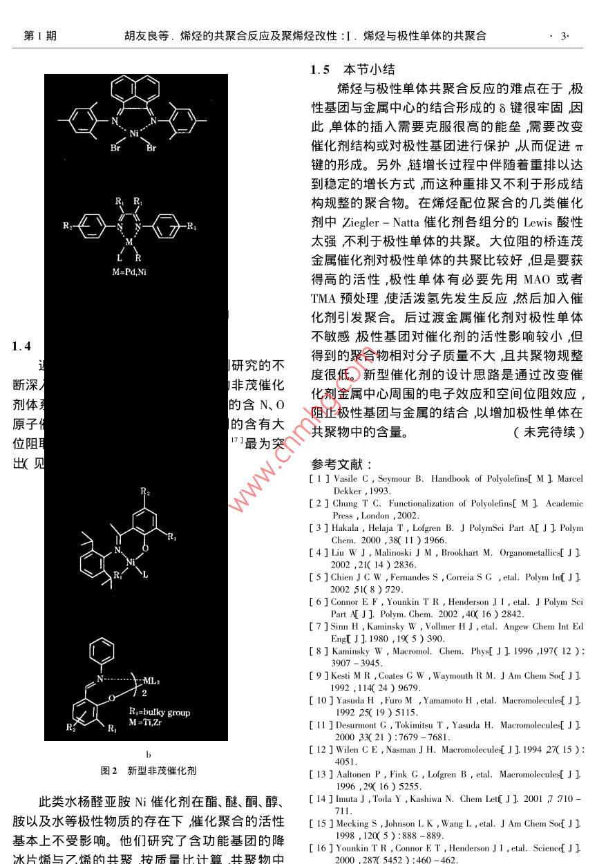 烯烃的共聚合反应及聚烯烃改性:Ⅰ.烯烃与极性单体的共聚合