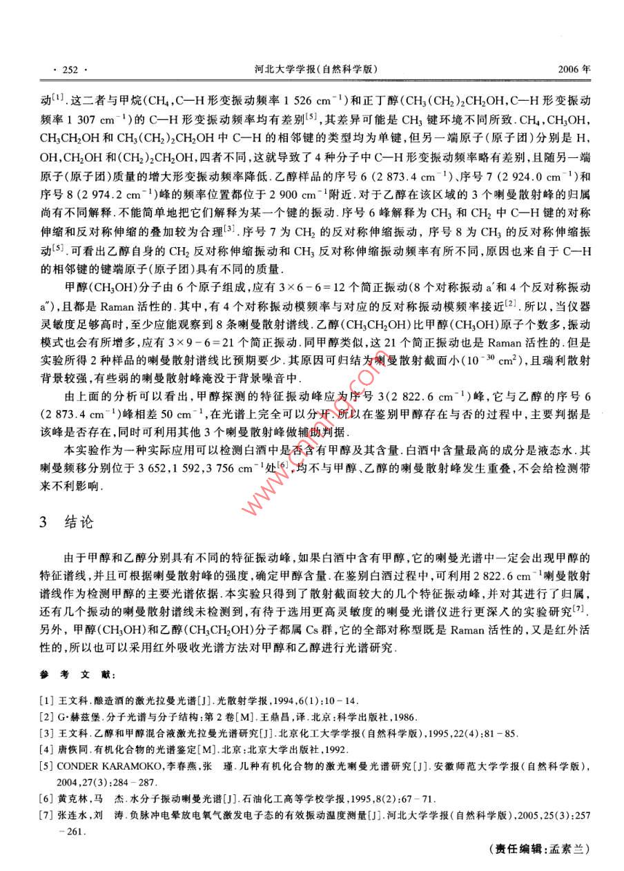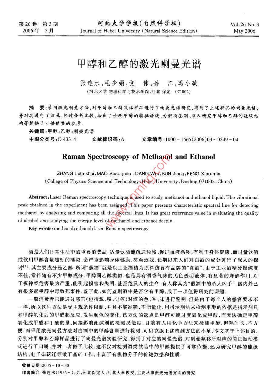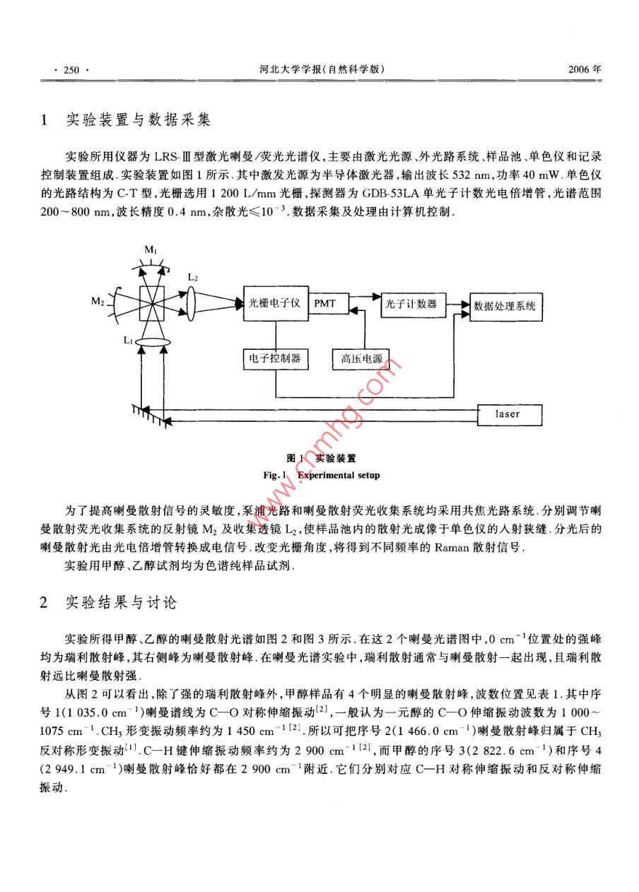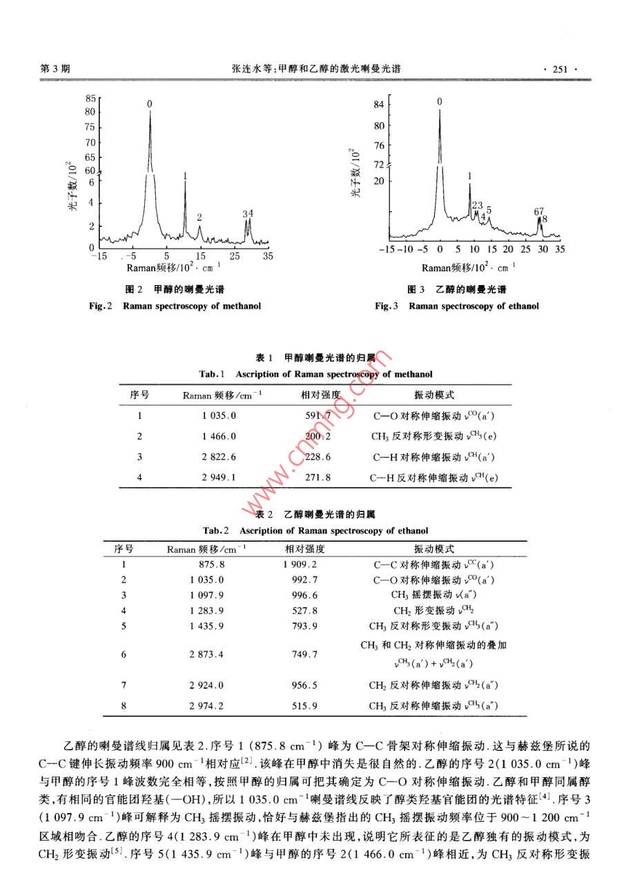 甲醇和乙醇的激光喇曼光谱