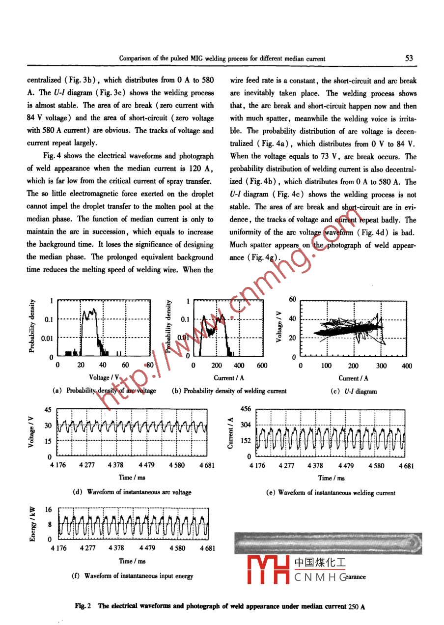 Comparison of the pulsed MIG welding process for different median current