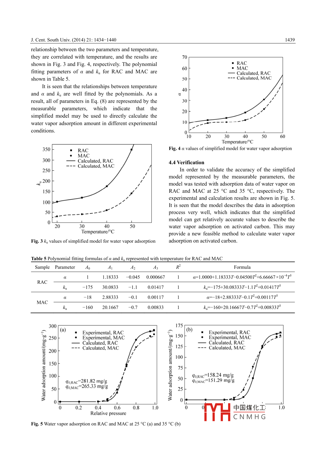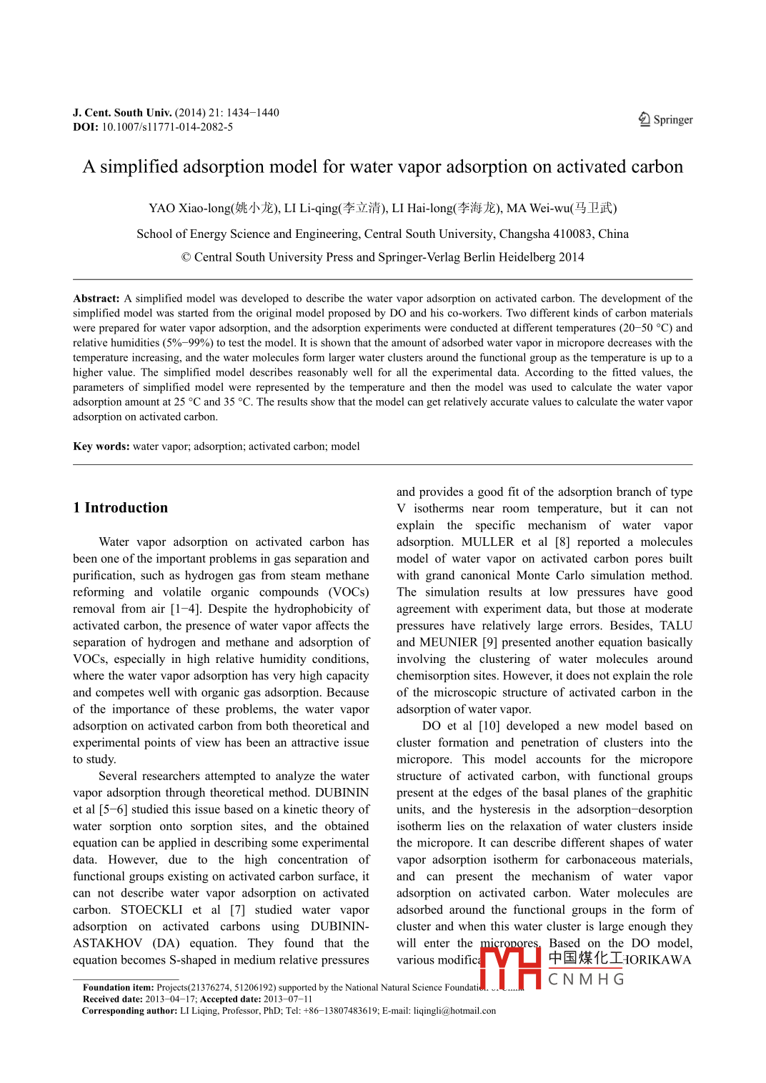 A simplified adsorption model for water vapor adsorption on activated carbon