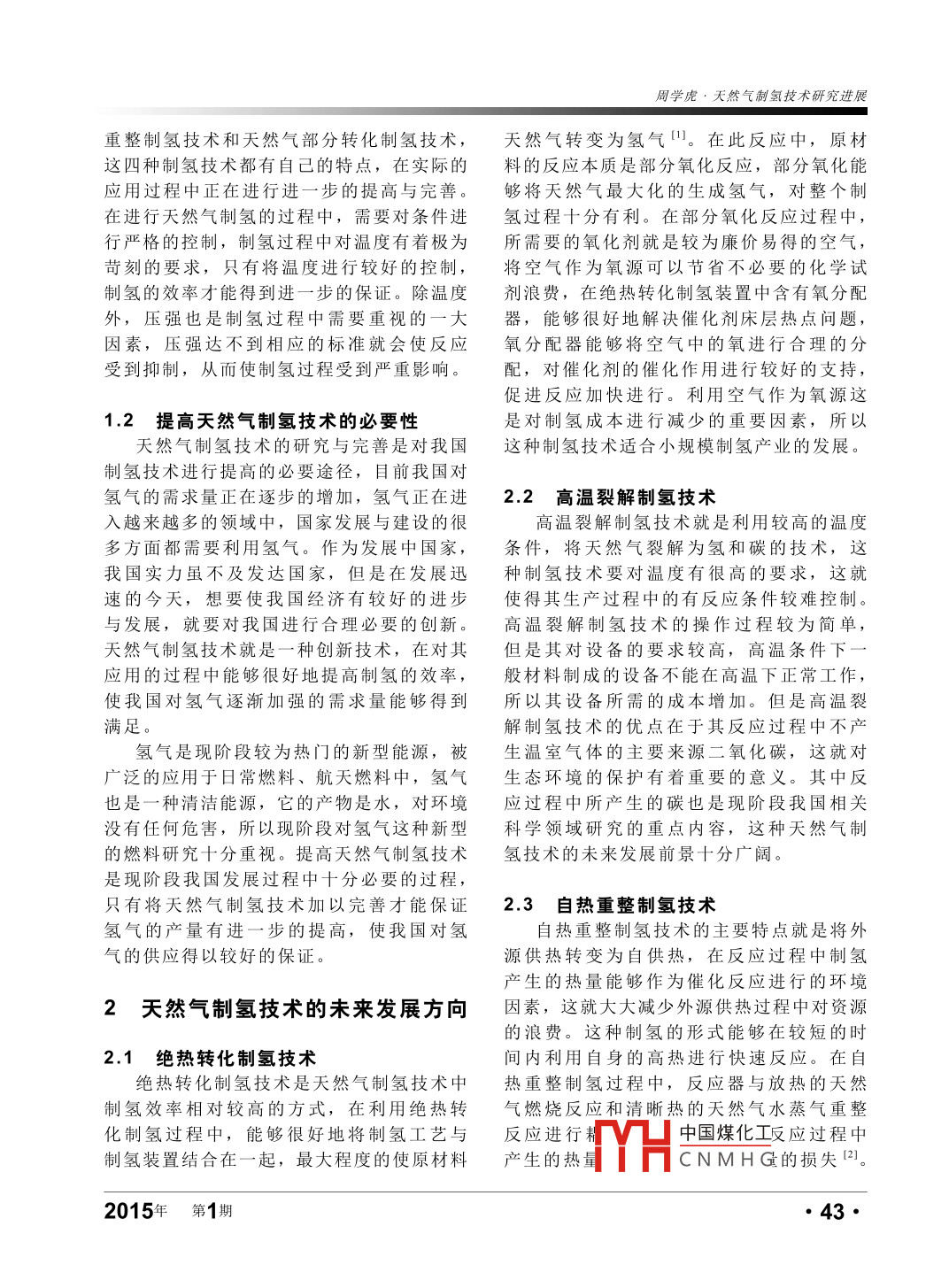天然气制氢技术研究进展