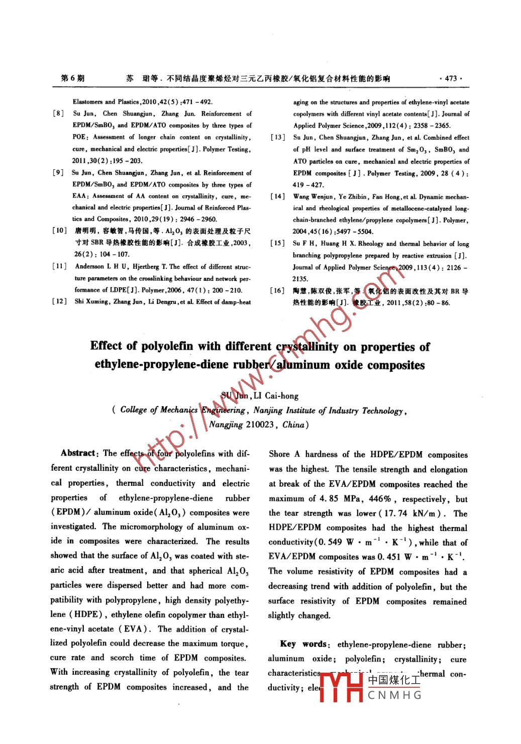 不同结晶度聚烯烃对三元乙丙橡胶/氧化铝复合材料性能的影响