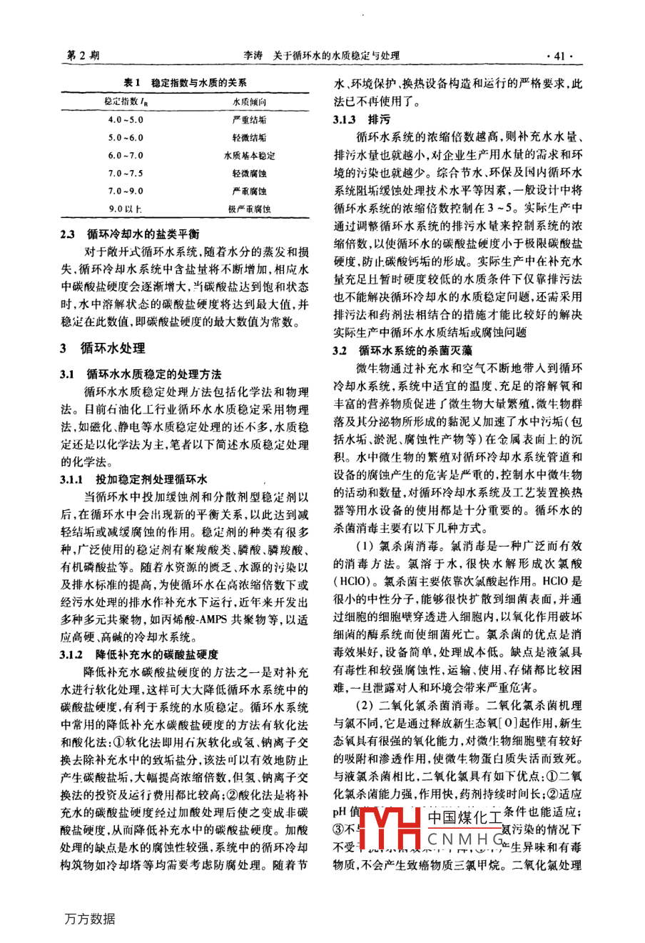 关于循环水的水质稳定与处理