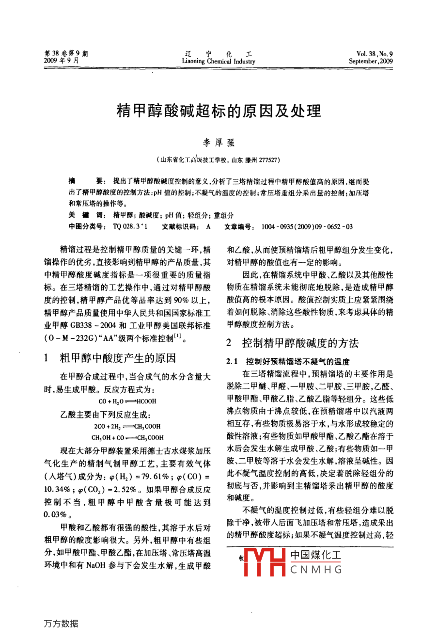 精甲醇酸碱超标的原因及处理