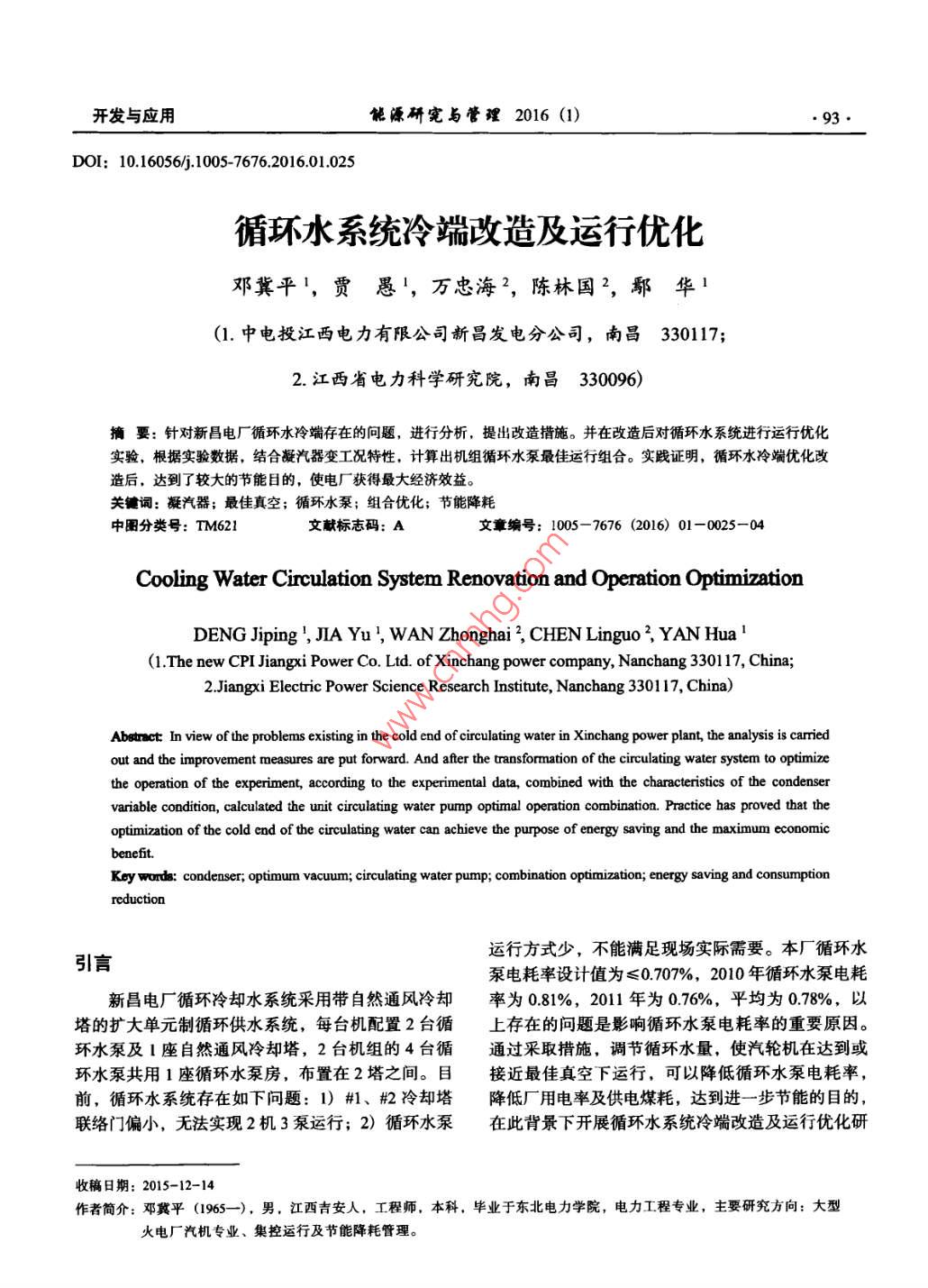 - 作者单位:中电投江西电力有限公司新昌发电分公司,江西省电力科学研究院