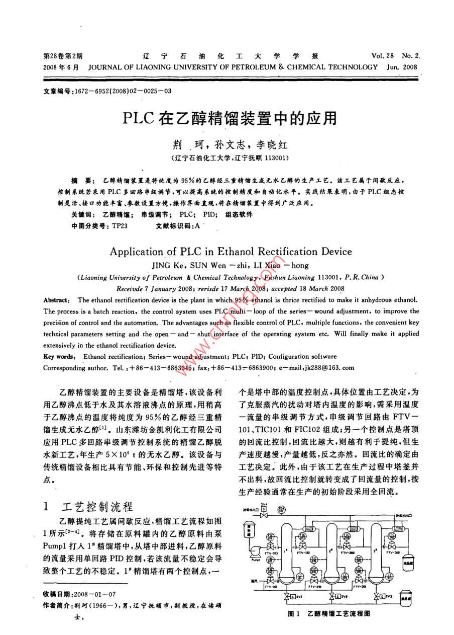 PLC在乙醇精馏装置中的应用
