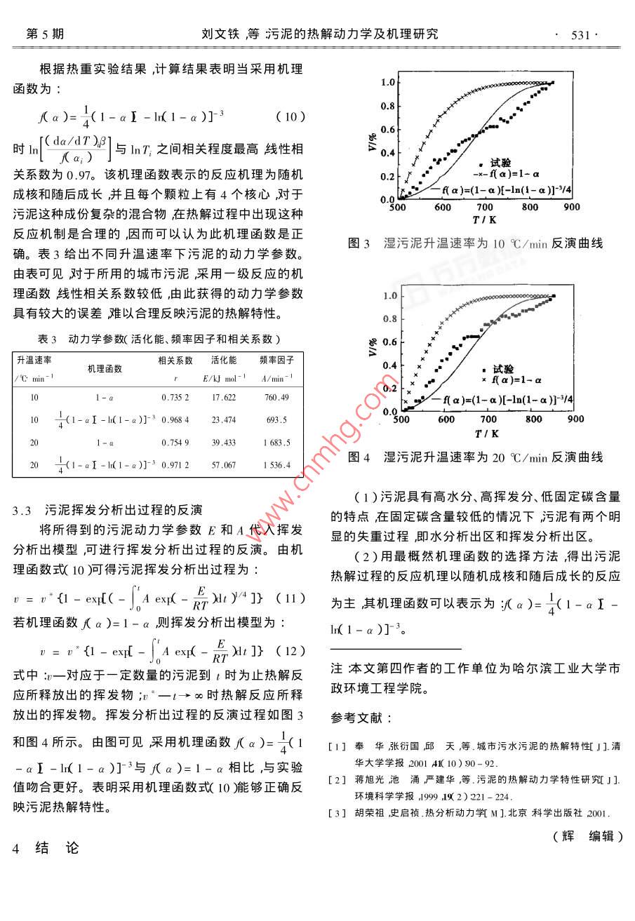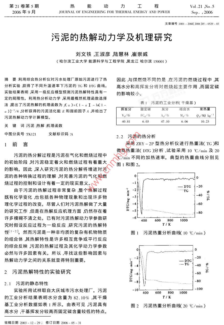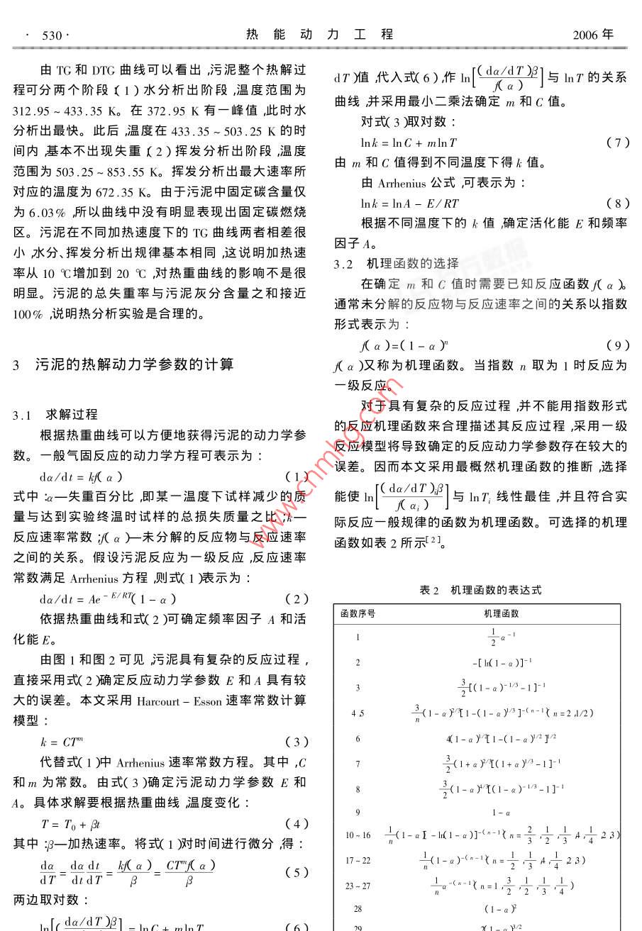 污泥的热解动力学及机理研究