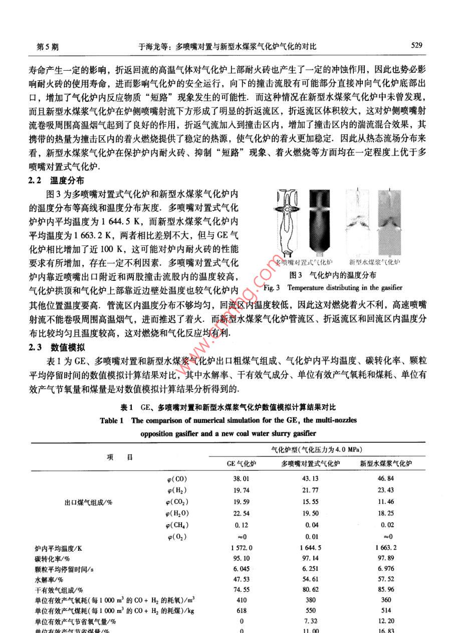 多喷嘴对置与新型水煤浆气化炉气化的对比