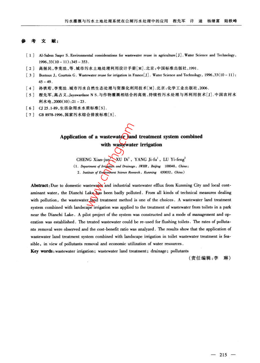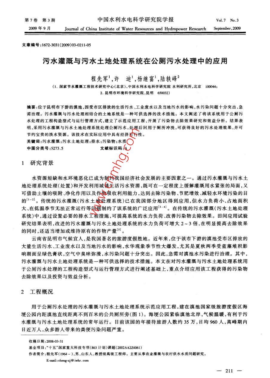 - 作者单位:国家节水灌溉工程技术研究中心(北京)中国水利水电科学研究院,昆明市环境科学研究院