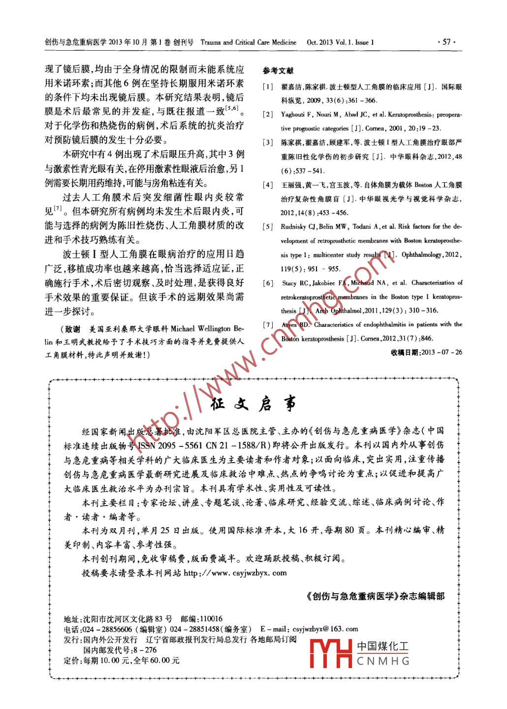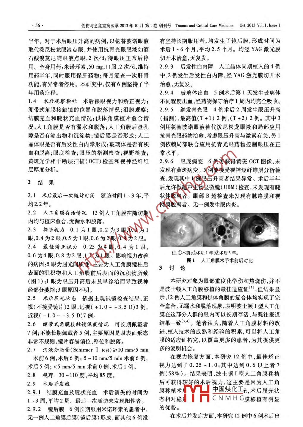 波士顿Ⅰ型人工角膜移植治疗眼部严重陈旧化学伤和热烧伤12例分析