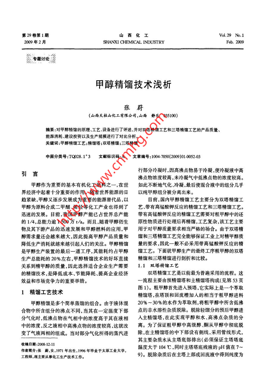 精甲醇及MTO级甲醇精馏工艺技术进展 2020-03-17