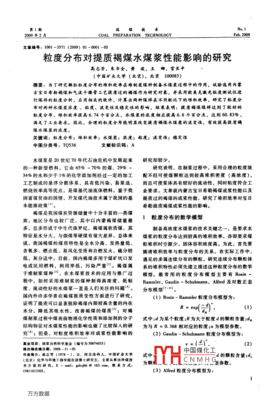 粒度分布对提质褐煤水煤浆性能影响的研究