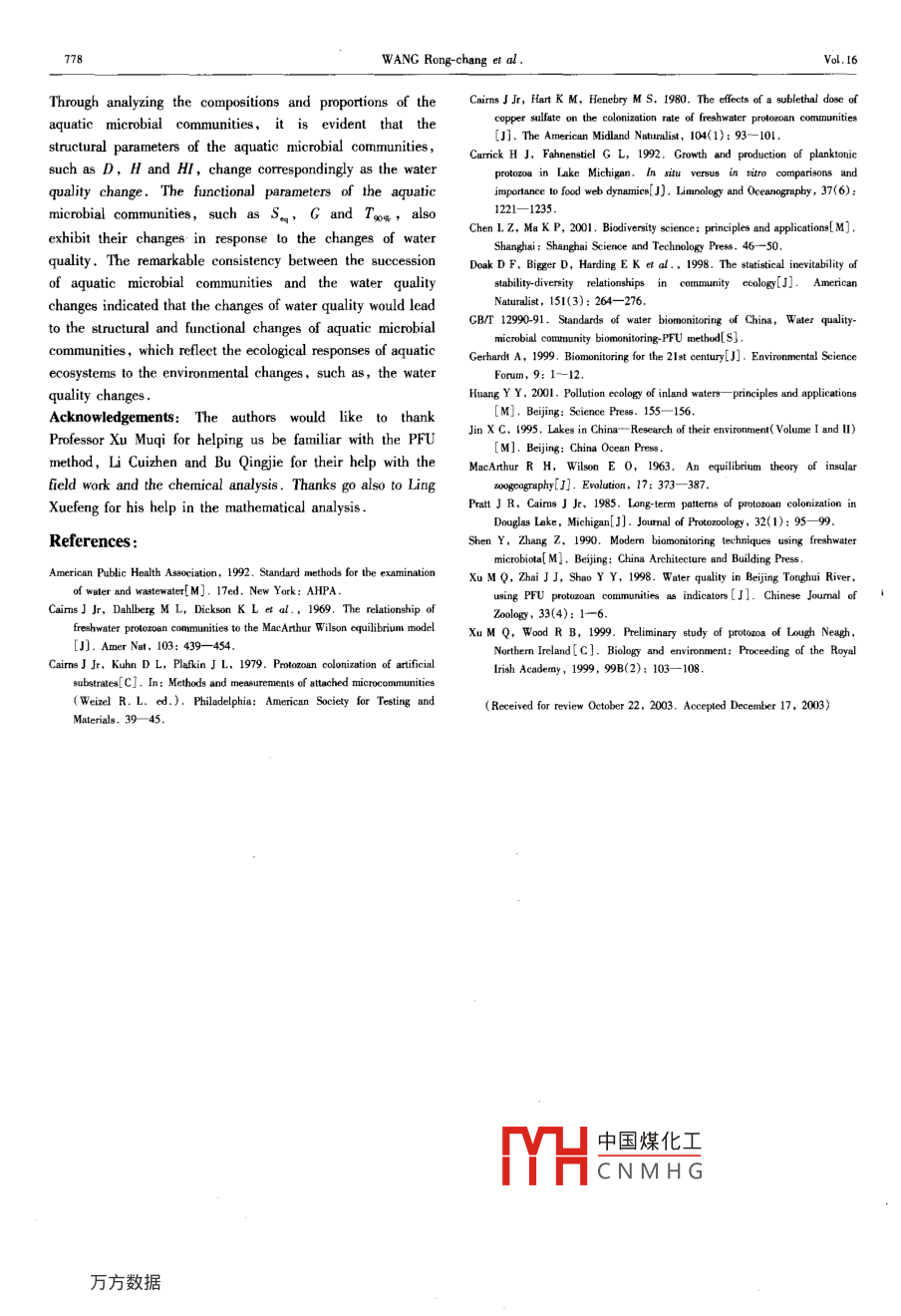 下一条:Establishment of water quality index (Na+, Ca2+) for purified water reused to zinc electrolysis proc