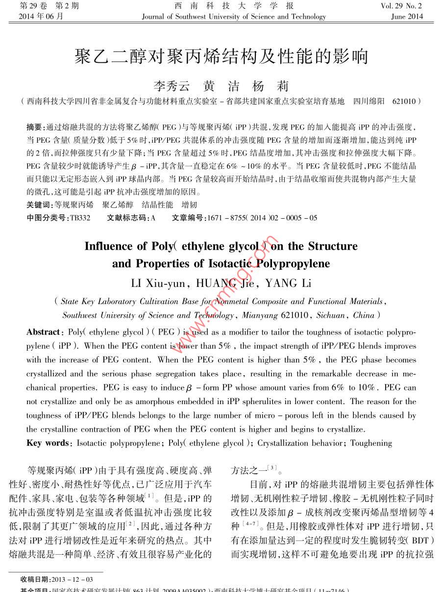 - 作者单位:西南科技大学四川省非金属复合与功能材料重点实验室