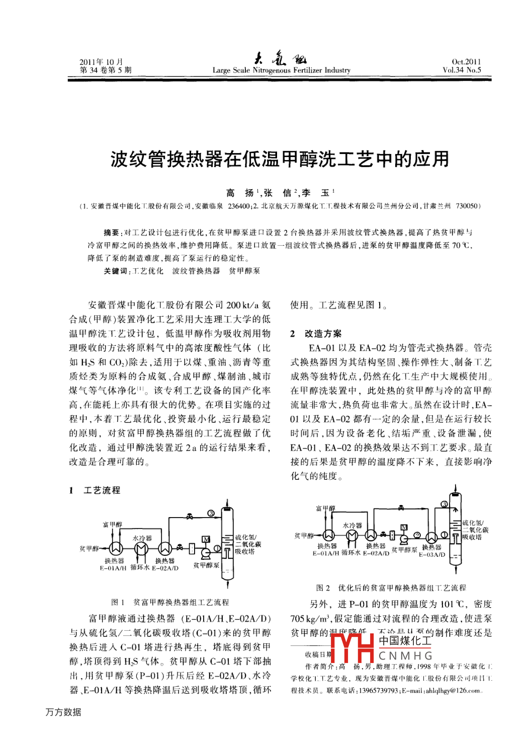波纹管换热器在低温甲醇洗工艺中的应用