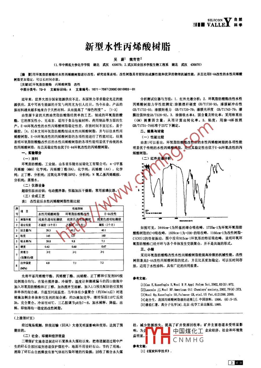 新型水性丙烯酸树脂