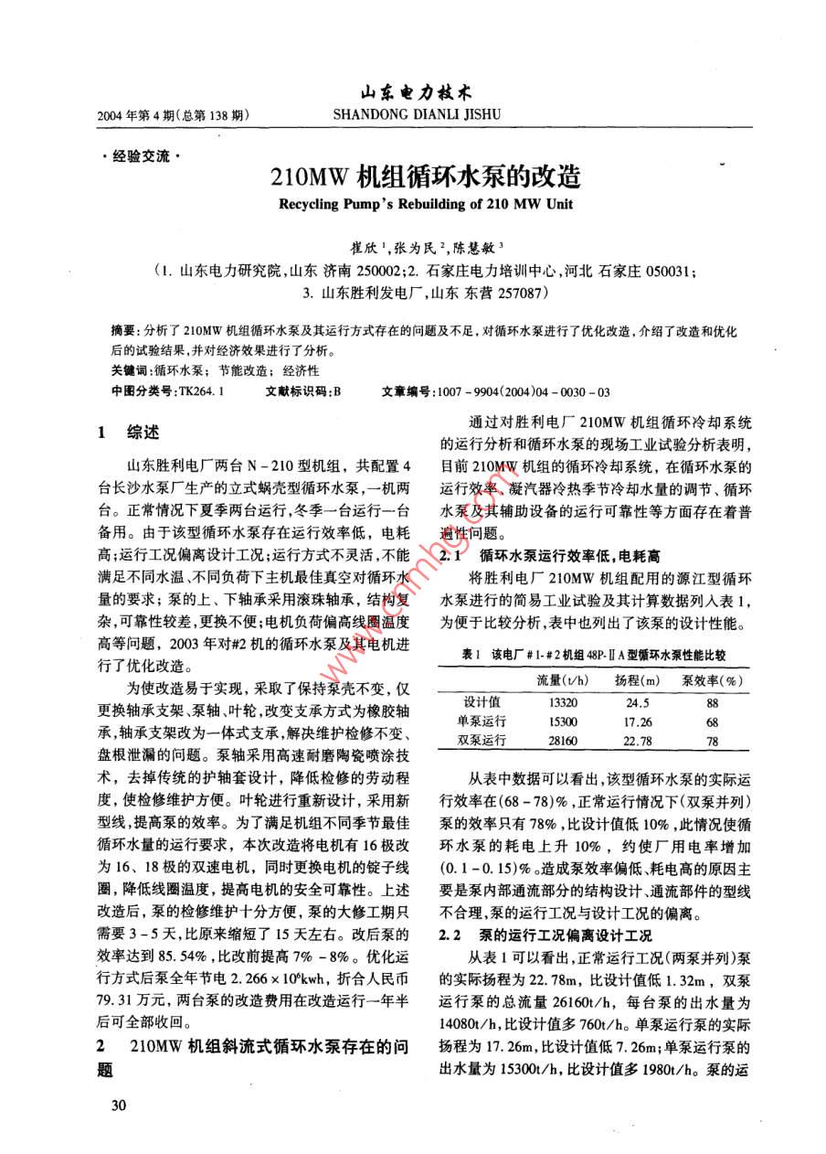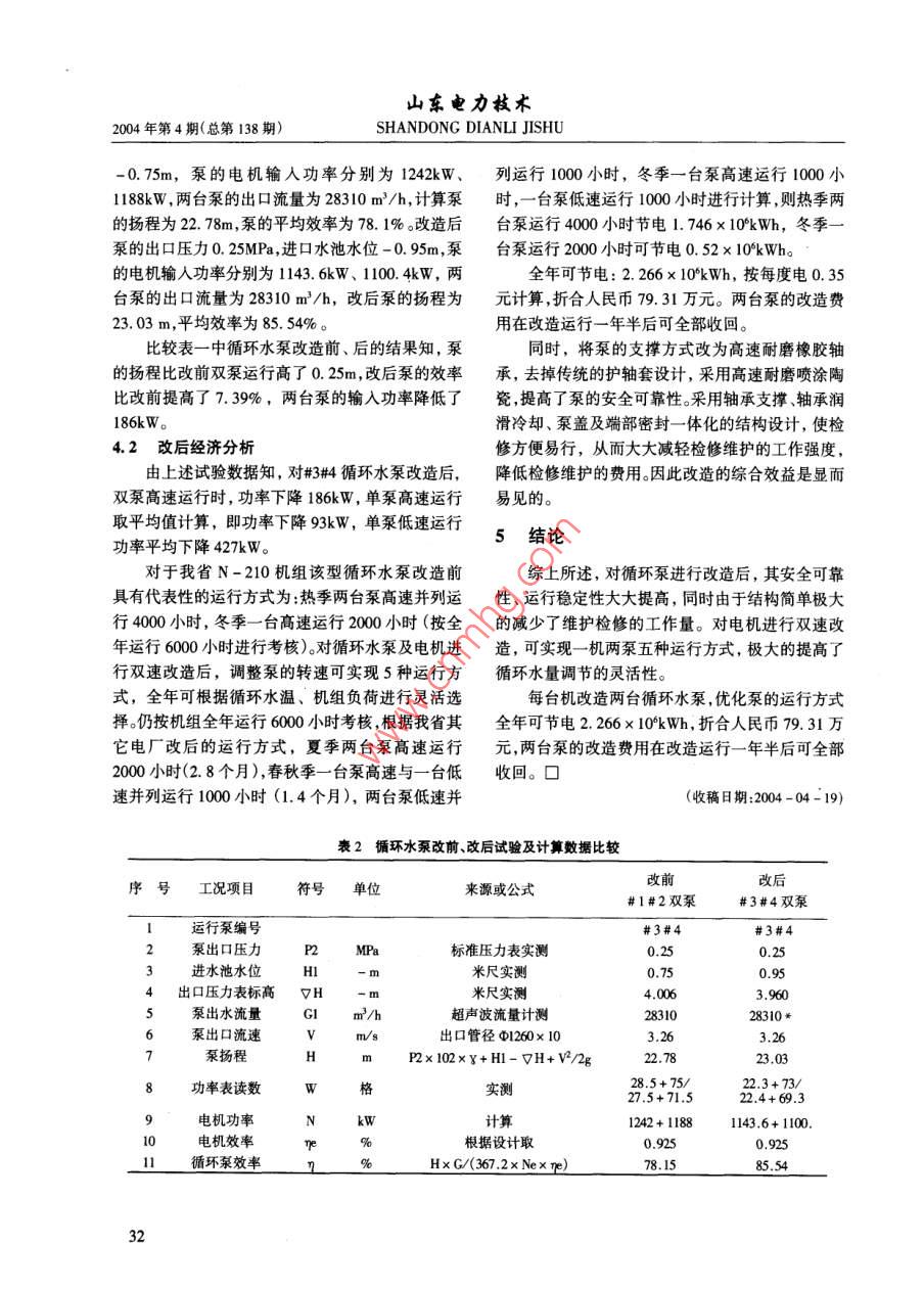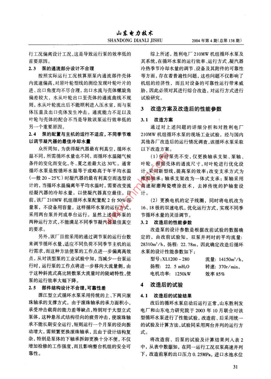 210MW机组循环水泵的改造