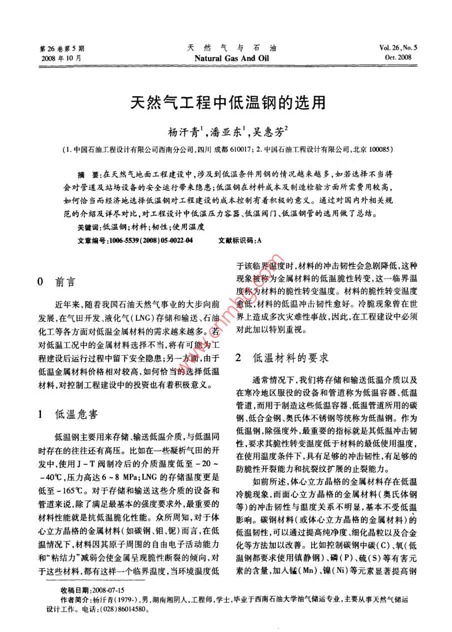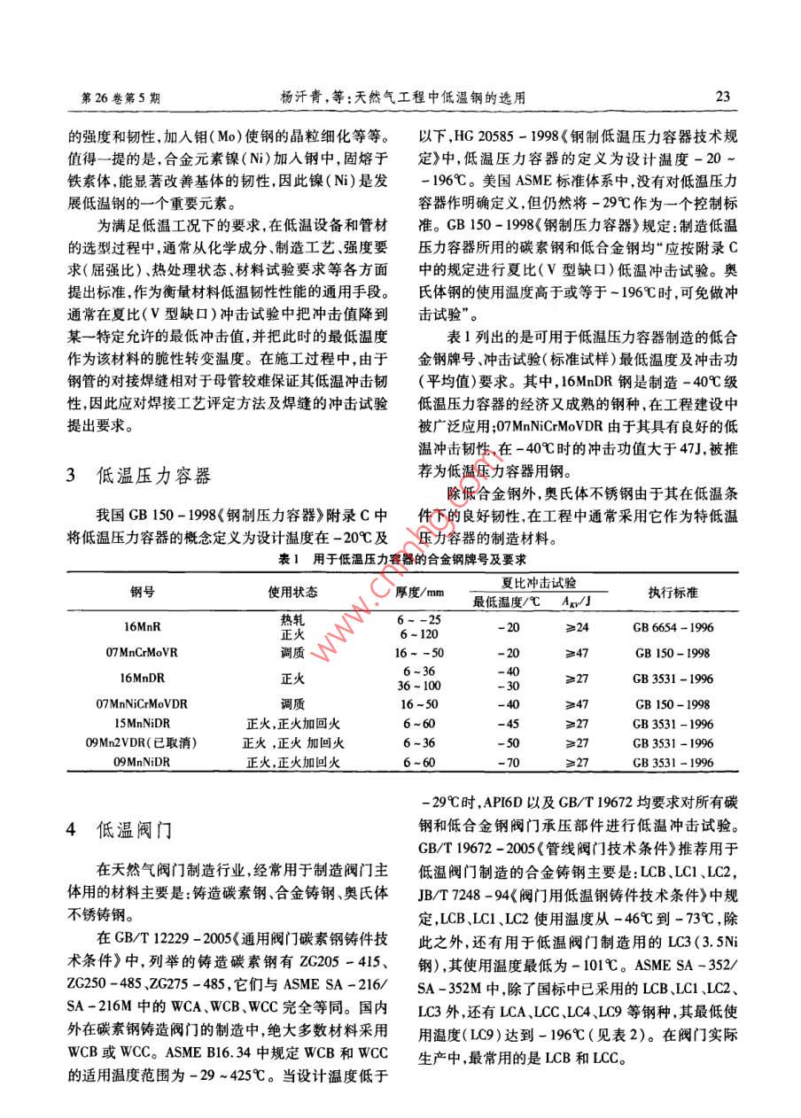 天然气工程中低温钢的选用