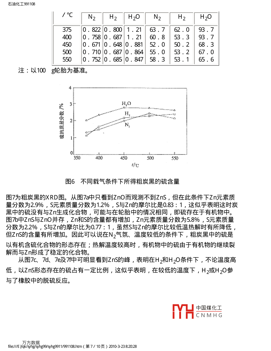 废轮胎热解过程及产物的研究
