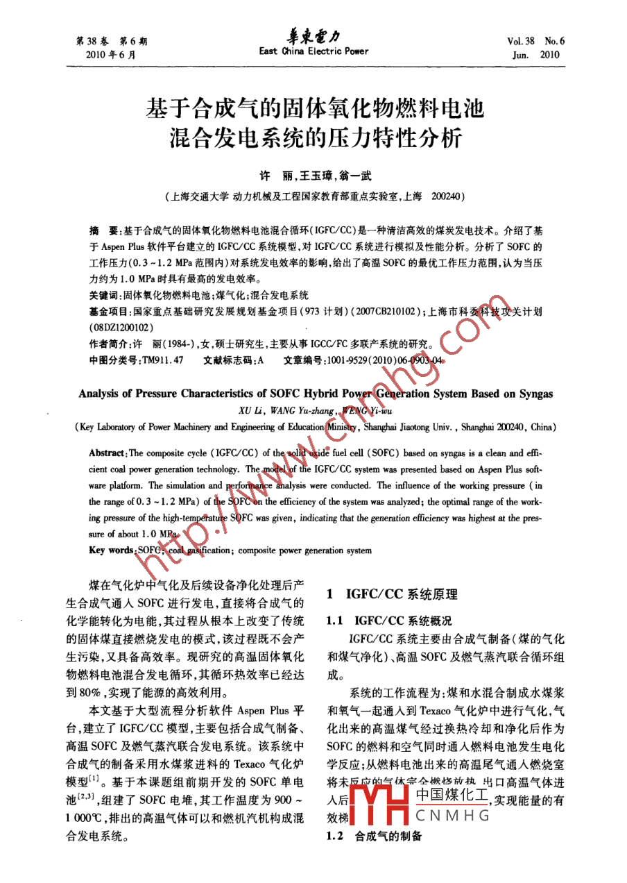 基于合成气的固体氧化物燃料电池混合发电系统的压力特性分析