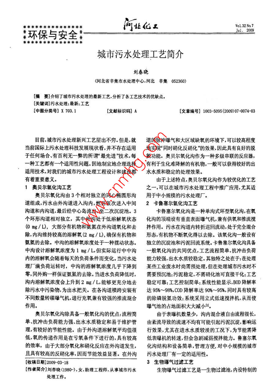 - 作者单位:河北省辛集市水处理中心