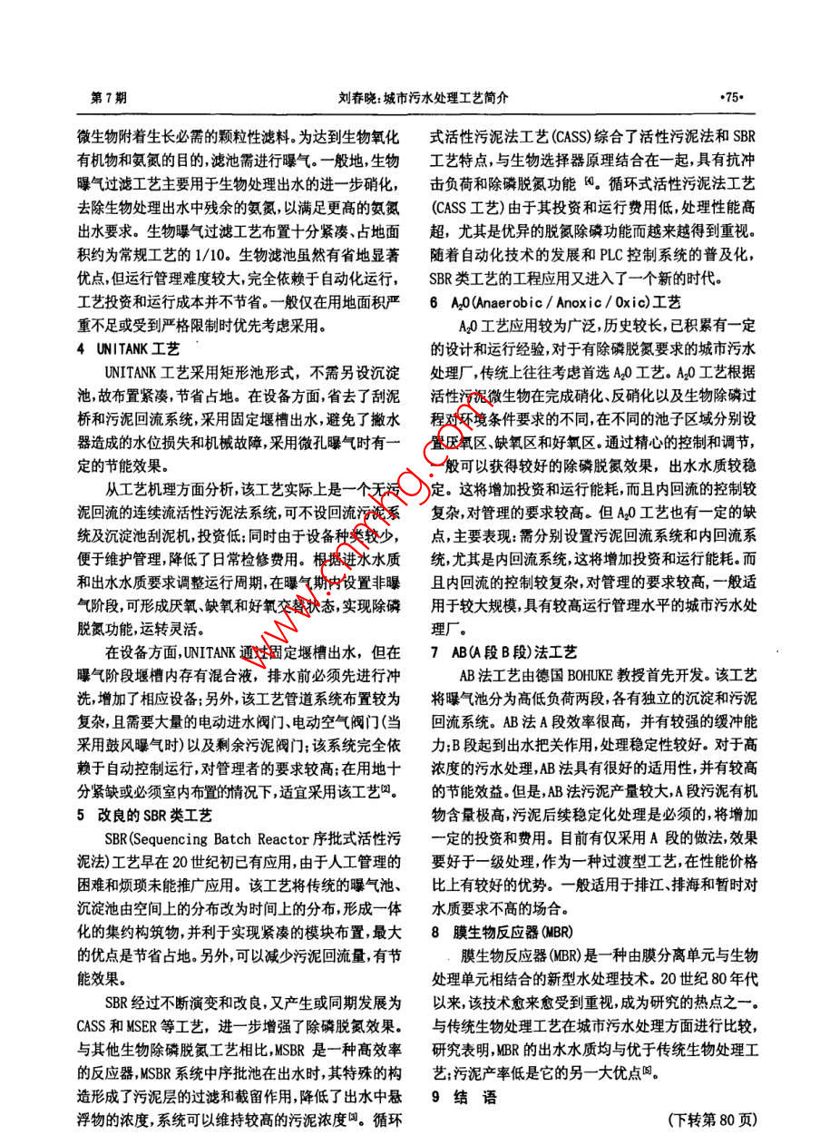 城市污水处理工艺简介