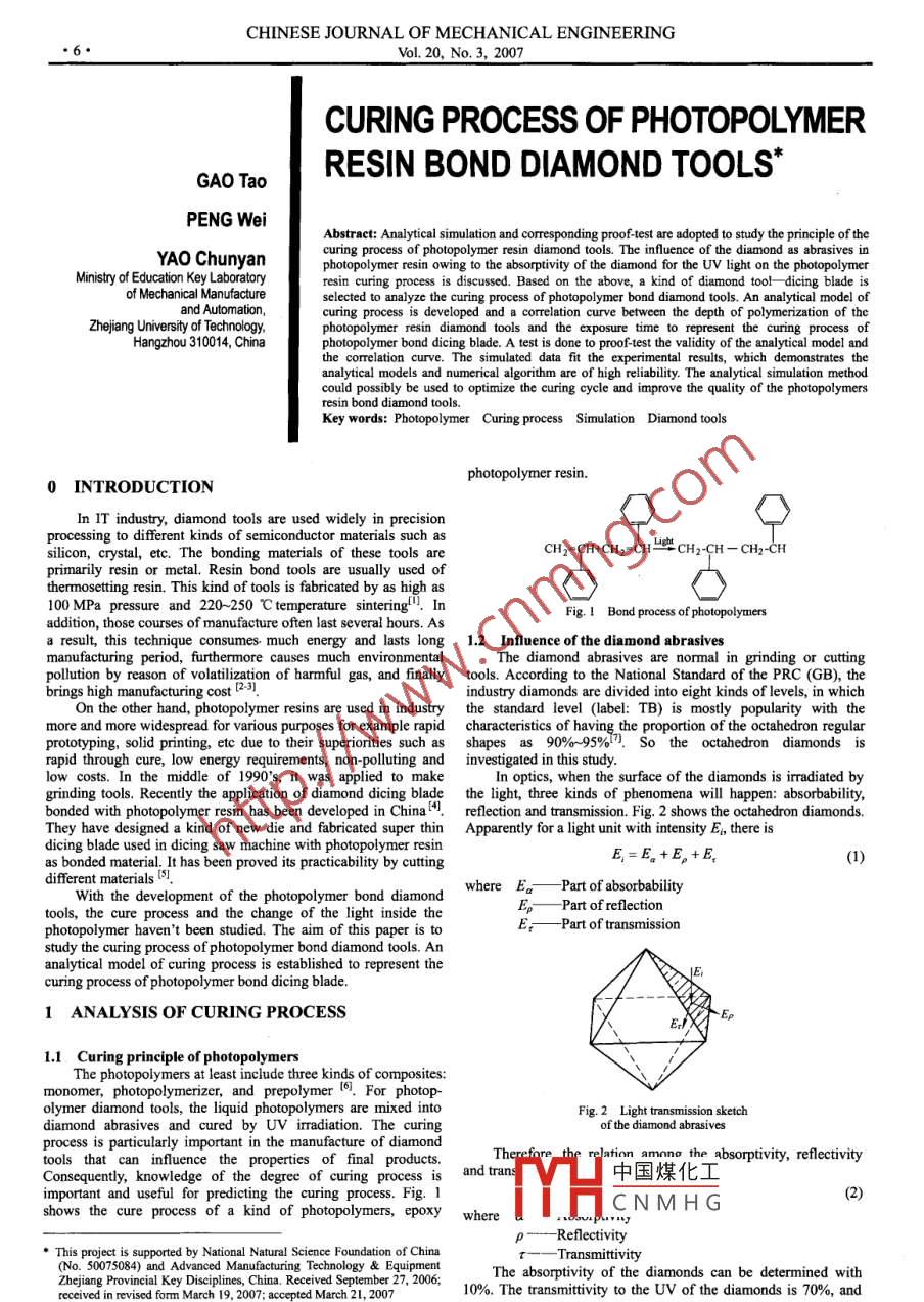 CURING PROCESS OF PHOTOPOLYMER RESIN BOND DIAMOND TOOLS