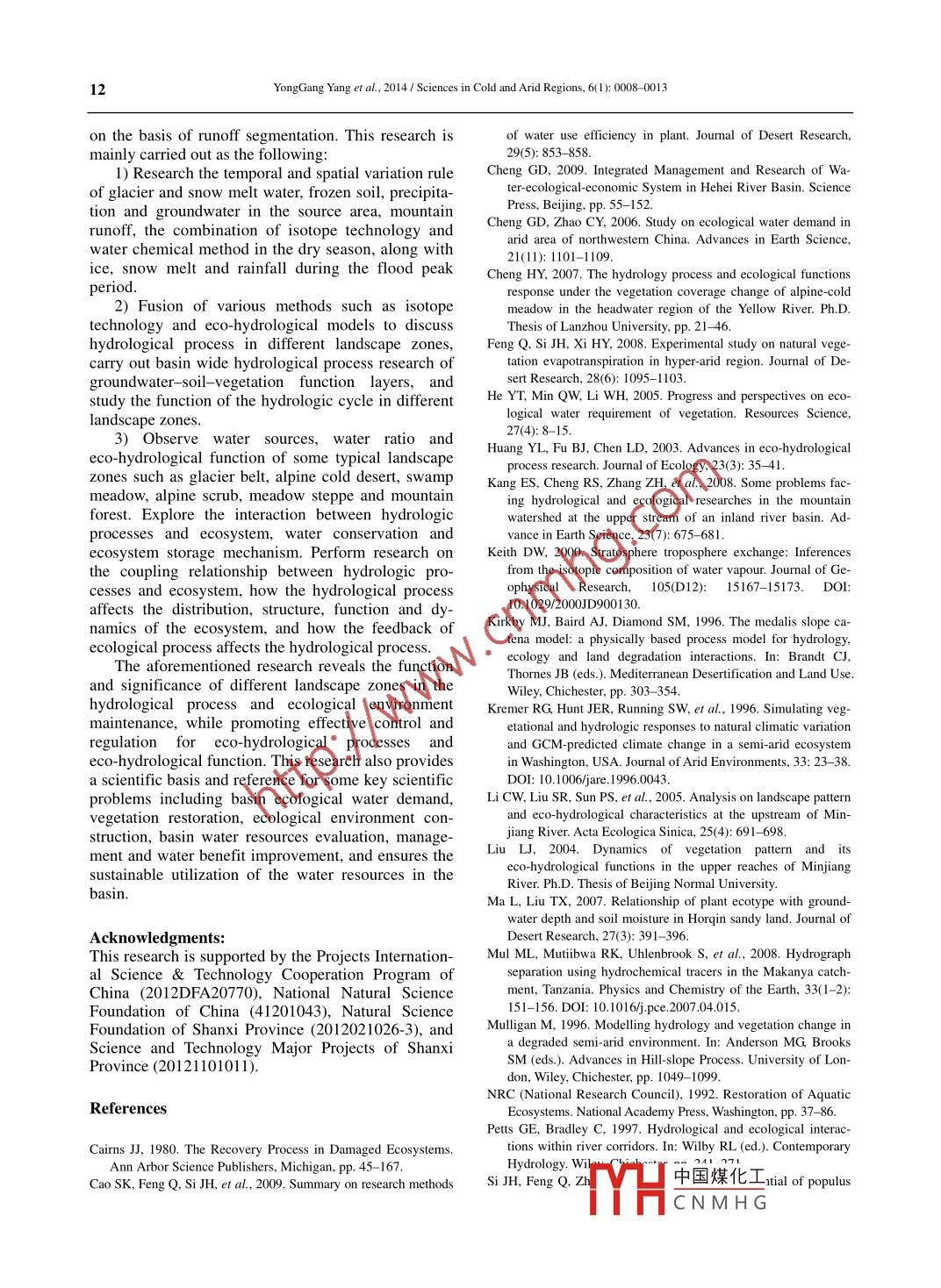 - 期刊名字:寒旱区科学(英文版)