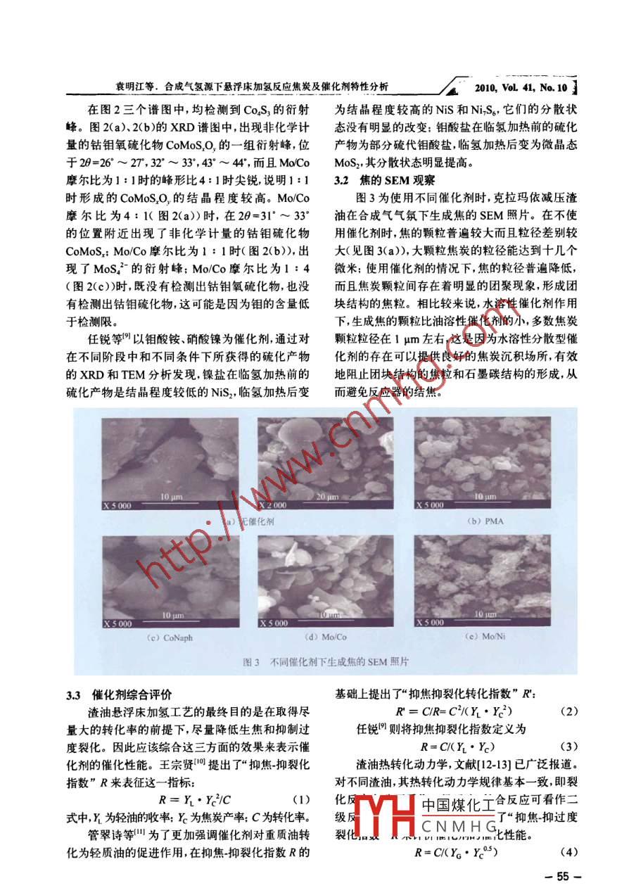 合成气氢源下悬浮床加氢反应焦炭及催化剂特性分析