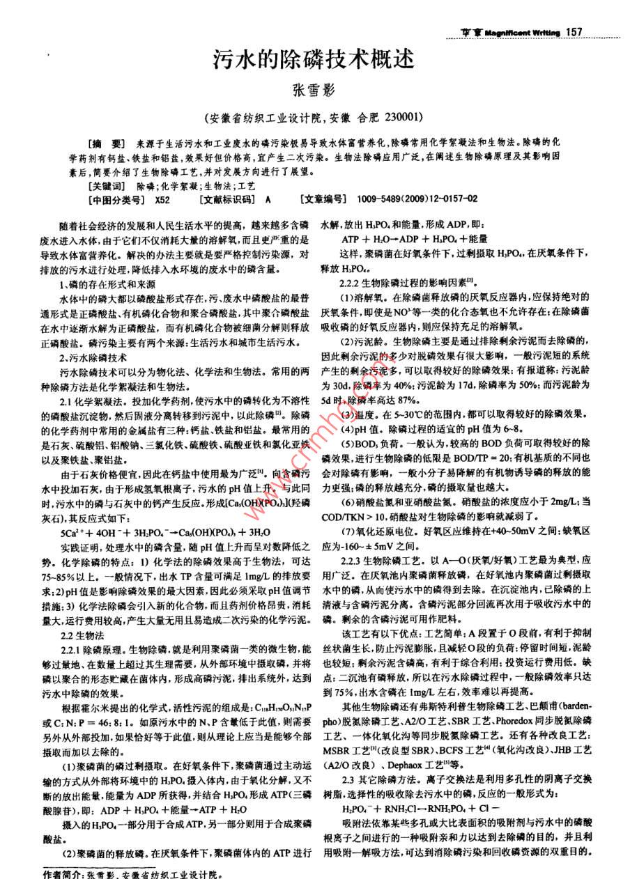 污水的除磷技术概述