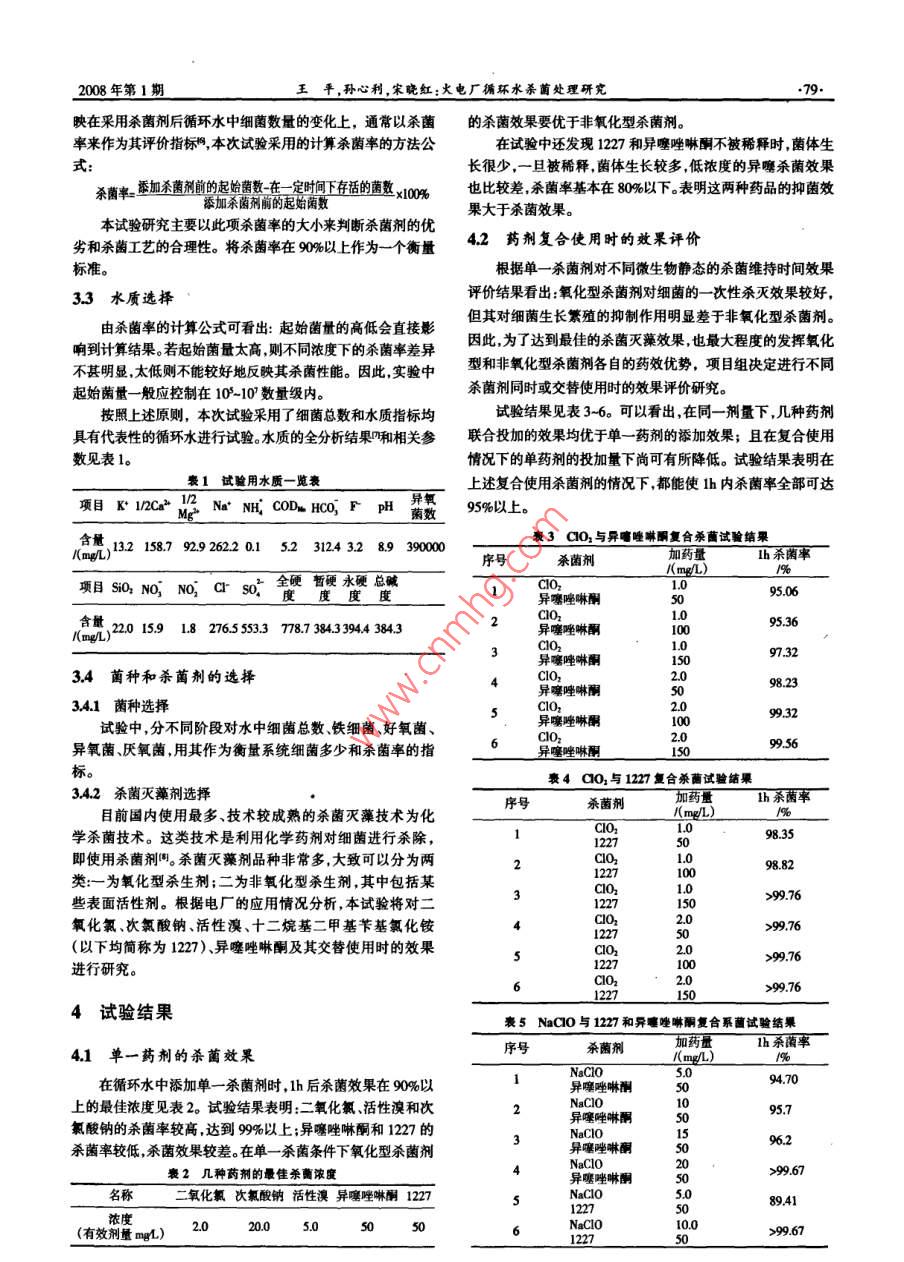 火电厂循环水杀菌处理研究