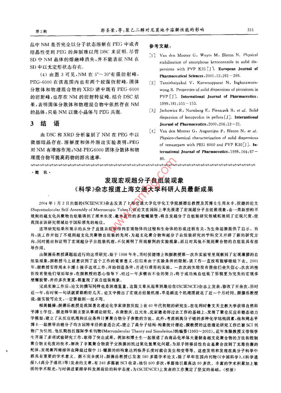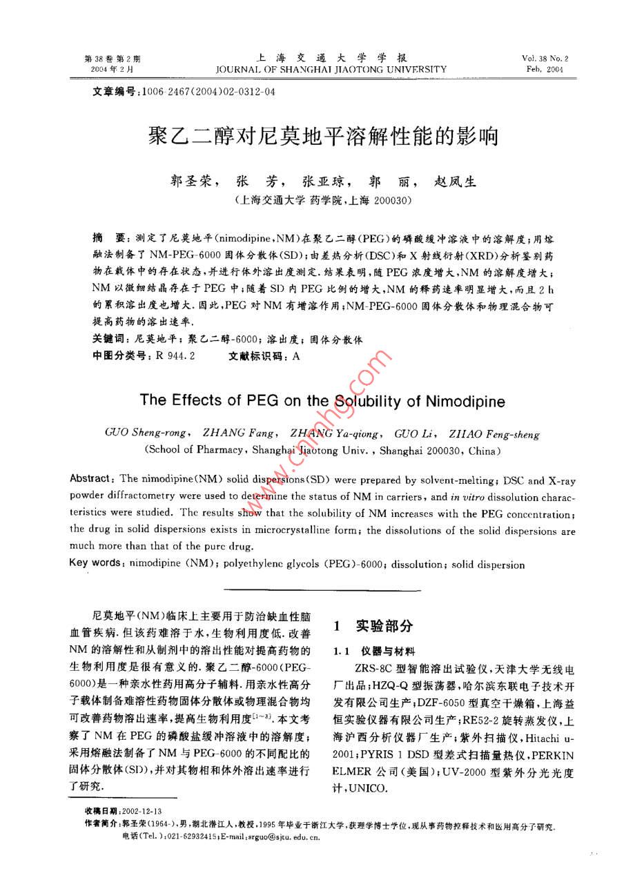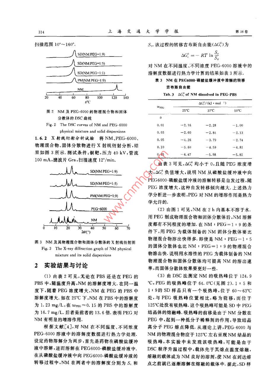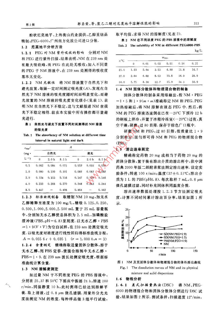 聚乙二醇对尼莫地平溶解性能的影响