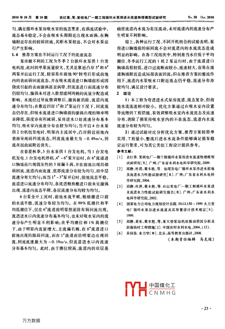某核电厂一期工程循环水泵房进水流道物理模型试验研究