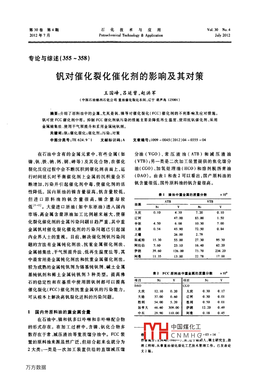 钒对催化裂化催化剂的影响及其对策