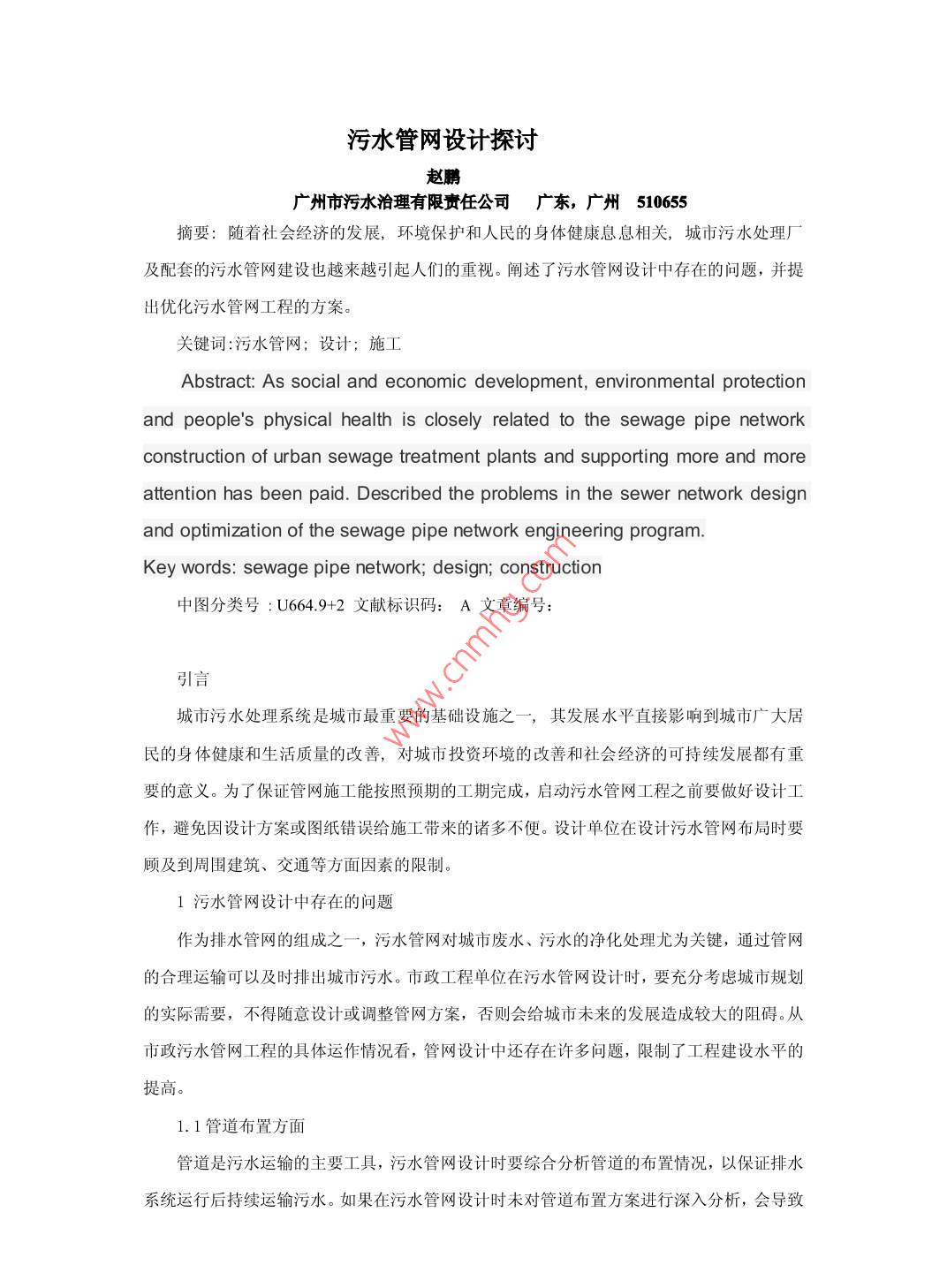 - 作者单位:广州市污水治理有限责任公司