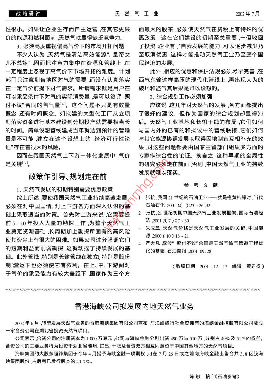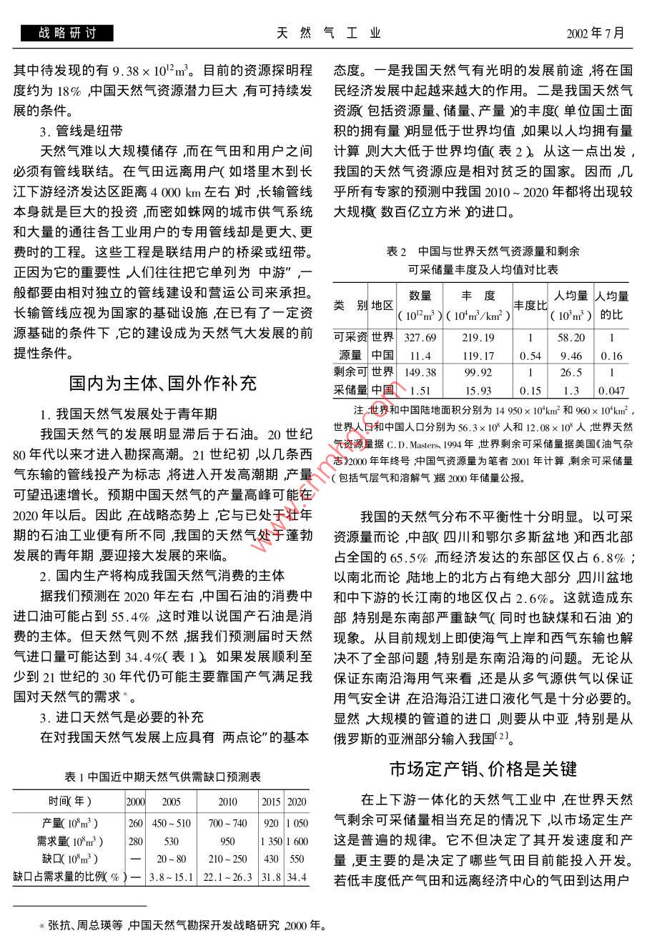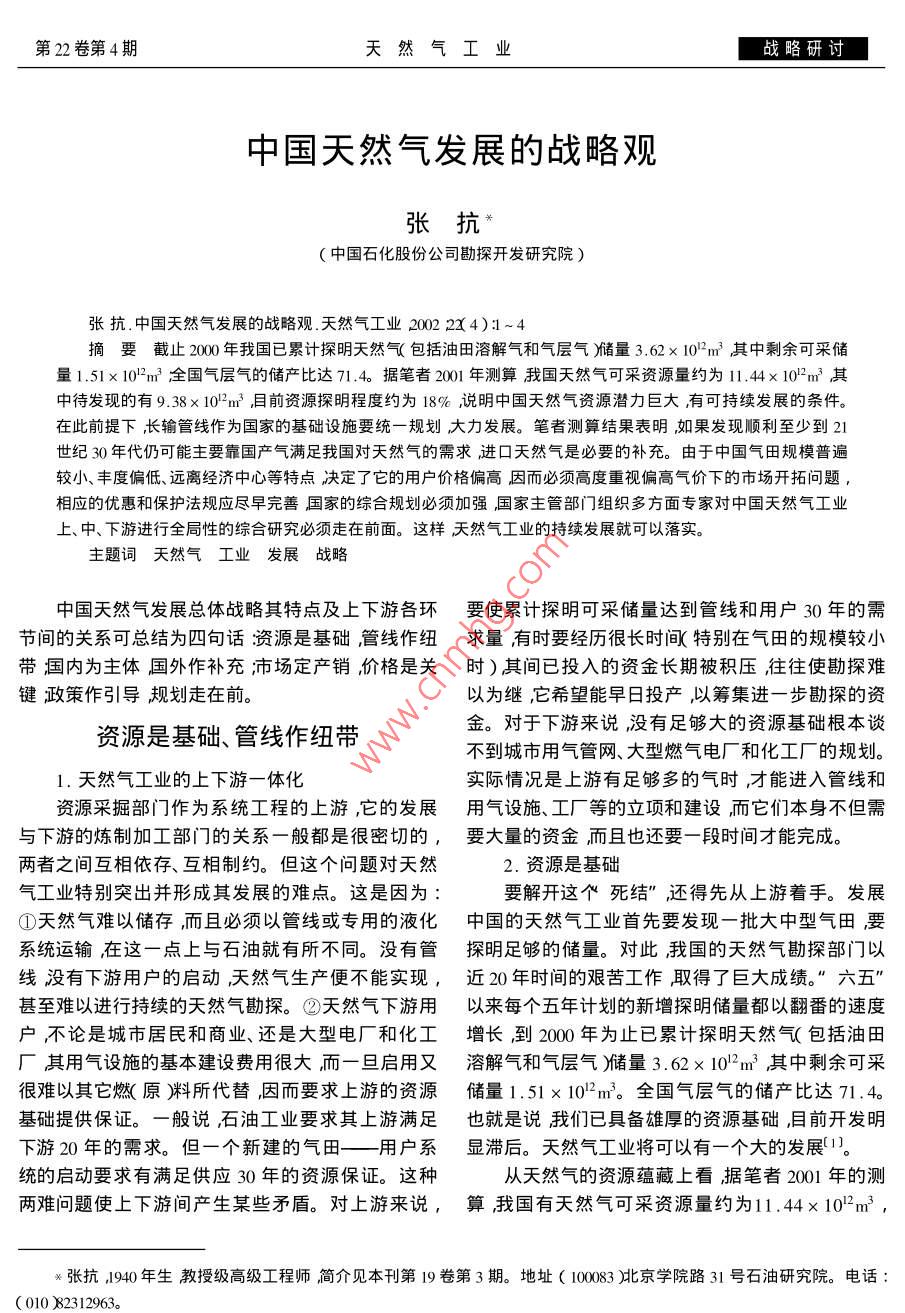 中国天然气发展的战略观