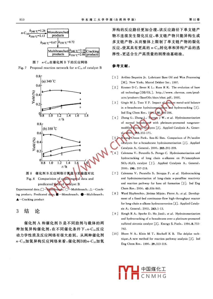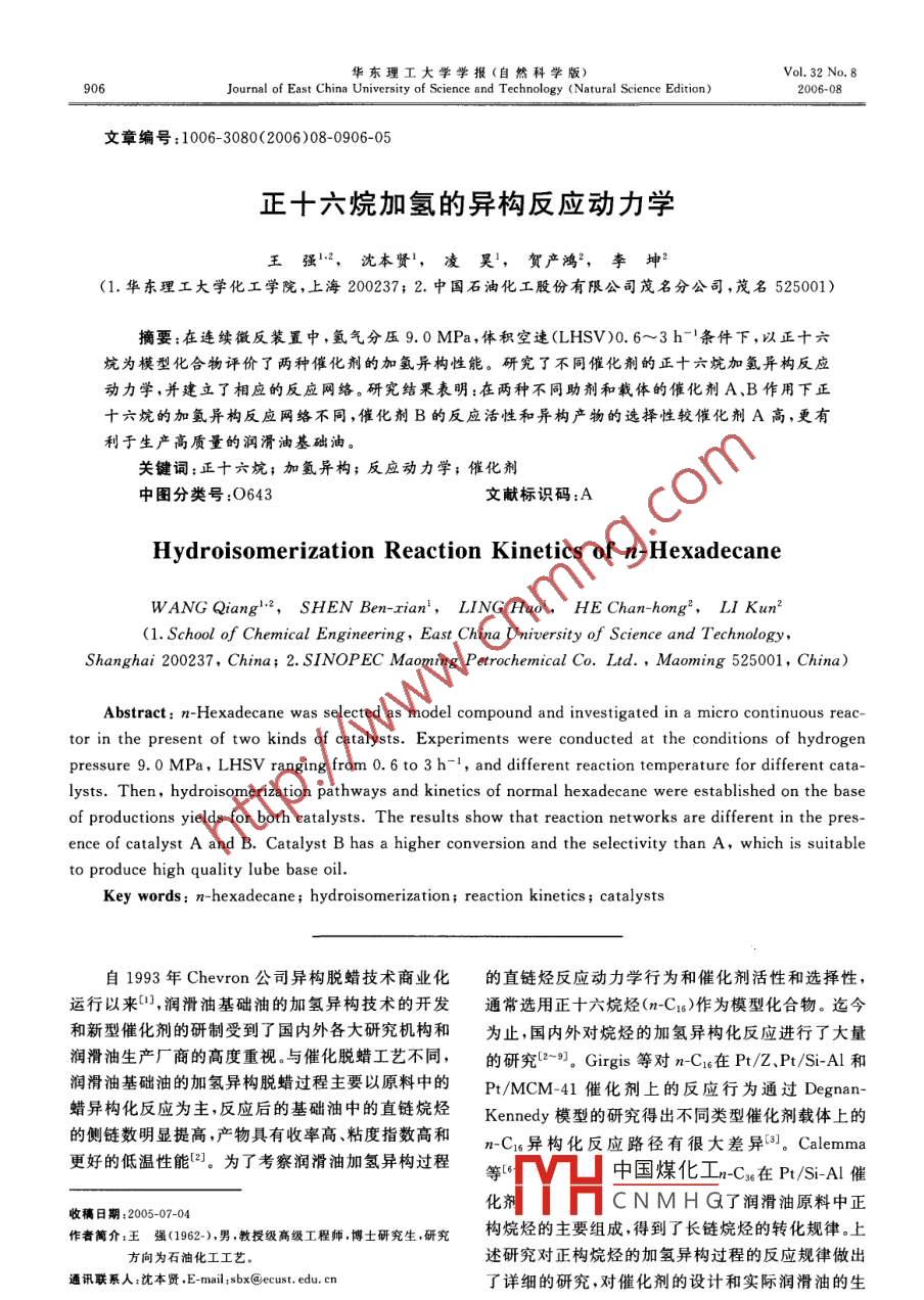 正十六烷加氢的异构反应动力学