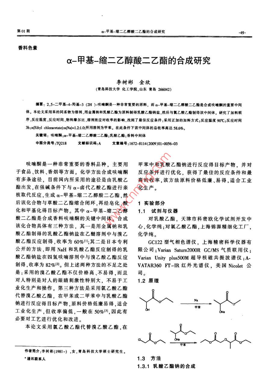 α-甲基-缩二乙醇酸二乙酯的合成研究