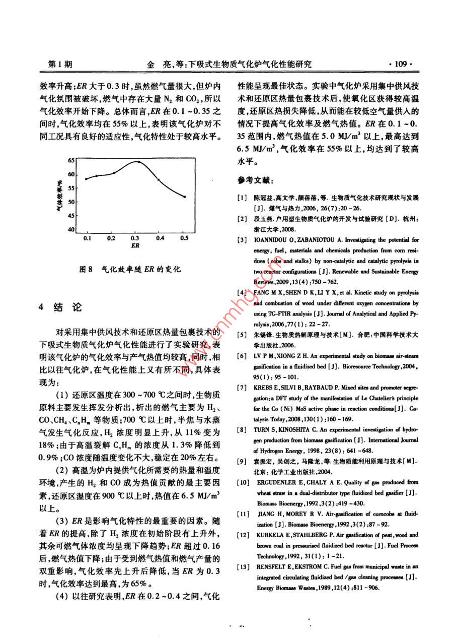 下吸式生物质气化炉气化性能研究